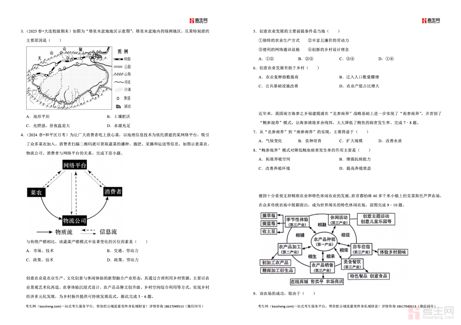 2025—2026 学年下学期高一地理鲁教版(2019)同步经典题精练之农业的区位选择,严格同步教材章节知识点与高一下学期教学进度,聚焦农业区位因素、区位选择原则、不同农业地域类型布局、区位因素的变化核心考点,覆盖自然因素、社会经济因素对农业布局的影响等重点内容。精选贴合学情的经典习题,注重图文结合解读、区位因素综合分析、农业案例应用、易错点突破,精准对接高考考向,帮助学生掌握农业区位选择的思路与方法,理清各类因素对农业生产的影响逻辑。适合高一学生同步练习、专题突破、课后巩固、单元复习,快速夯实章节基础,提升地理综合分析与应试解题能力。请添加微信 18617049513 进专属群,获取更多免费资源