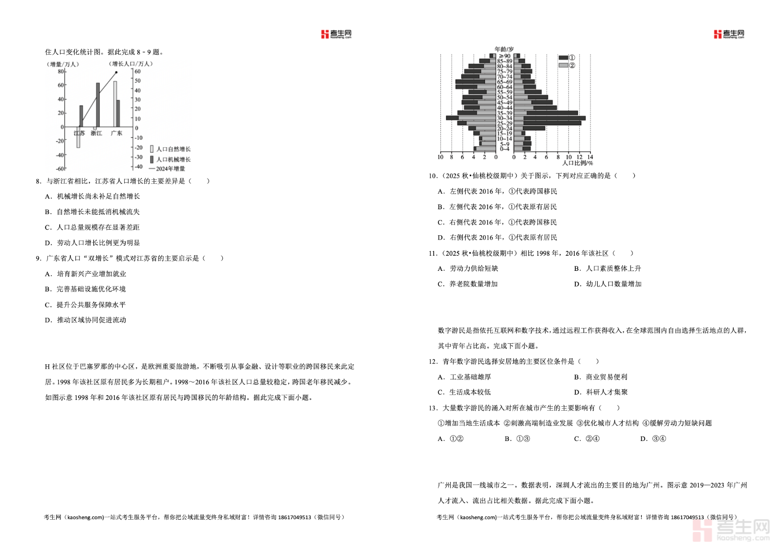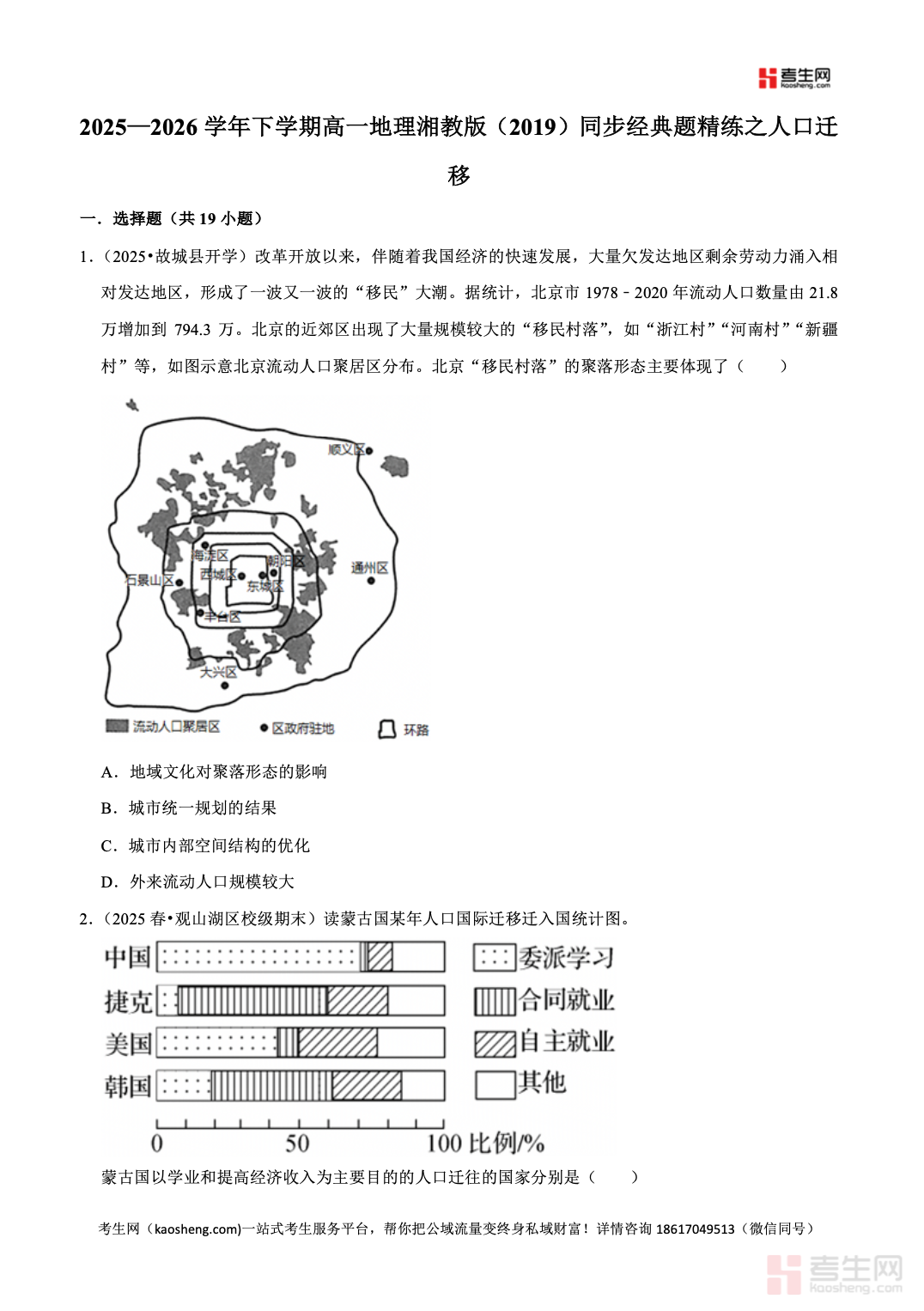 2025—2026 学年下学期高一地理湘教版(2019)同步经典题精练之人口迁移,同步教材章节与课堂教学进度,紧扣人口迁移概念与分类、影响人口迁移的主要因素、国际人口迁移特点、国内人口迁移趋势、人口迁移对区域发展的影响等核心考点,精选基础题、图表题、材料分析题与综合应用题,强化图文判读、逻辑分析、案例理解、规范答题能力训练,贴合新课标要求与高考命题方向。习题由浅入深、针对性强,能有效帮助学生梳理知识、突破易错难点,适合高一学生课后同步练习、章节巩固、专题复习、考前自测,扎实掌握人口迁移相关内容,提升地理综合解题能力。请添加微信 18617049513 进专属群,获取更多免费资源!
