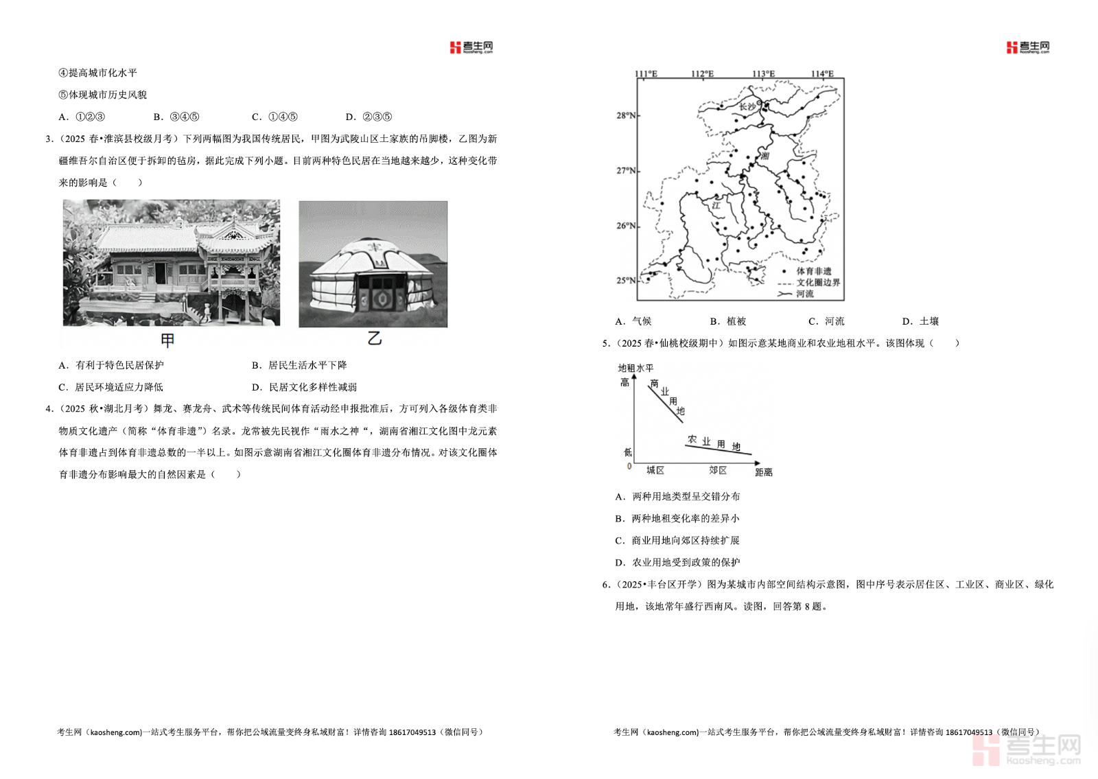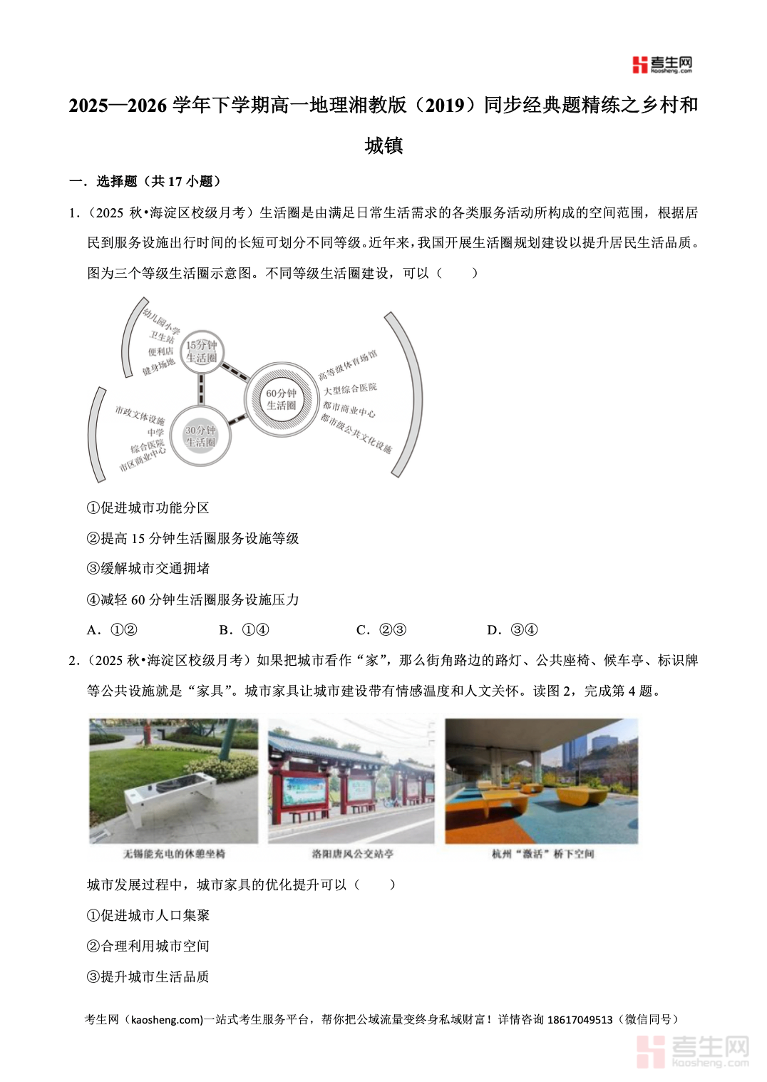 2025—2026 学年下学期高一地理湘教版(2019)同步经典题精练之乡村和城镇,同步教材章节与教学进度,围绕城乡空间结构、城镇化进程与特点、城镇化问题及优化对策、地域文化与城乡景观等核心考点设计习题,覆盖城乡内部功能分区、城镇化差异等重点内容,题型包含选择、图表分析、综合探究等,注重图文判读、问题分析、区位理解、答题规范训练,贴合新课标与高考命题方向。习题梯度清晰、针对性强,助力学生夯实基础、突破易错点,适合高一学生课后同步练习、章节复习、专题巩固、考前自测,提升城乡地理相关知识的掌握程度与综合解题能力。请添加微信 18617049513 进专属群,获取更多免费资源!