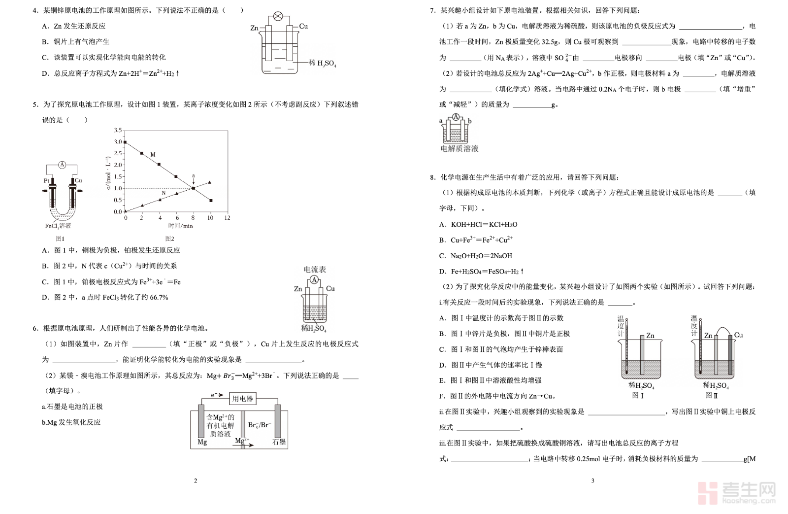 高一化学第六单元专项练习(化学原理)(人教版)电化学方程式小练,同步人教版高一化学教材第六单元教学内容,聚焦电化学基础、原电池原理、电解池反应、电极反应式书写、总反应方程式配平等核心考点,针对电化学方程式进行专项训练。习题由基础到提升,涵盖正负极判断、得失电子守恒、离子方程式规范、常见电化学模型等重点内容,强化方程式书写规范、电极反应分析、守恒法应用能力。题型贴合课堂练习与单元检测要求,适合高一学生单元巩固、专项突破、课后练习、考前查漏补缺,快速掌握电化学方程式书写技巧,夯实化学原理基础。请添加微信 18617049513 进专属群,获取更多免费资源!