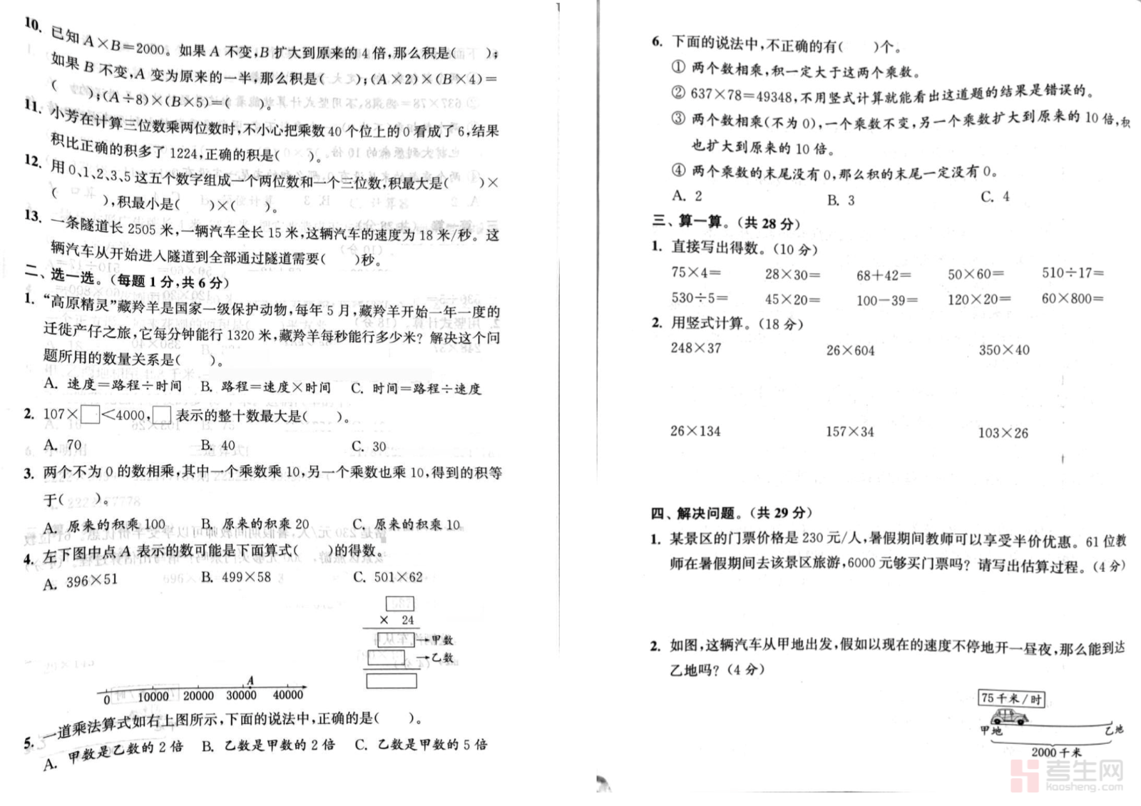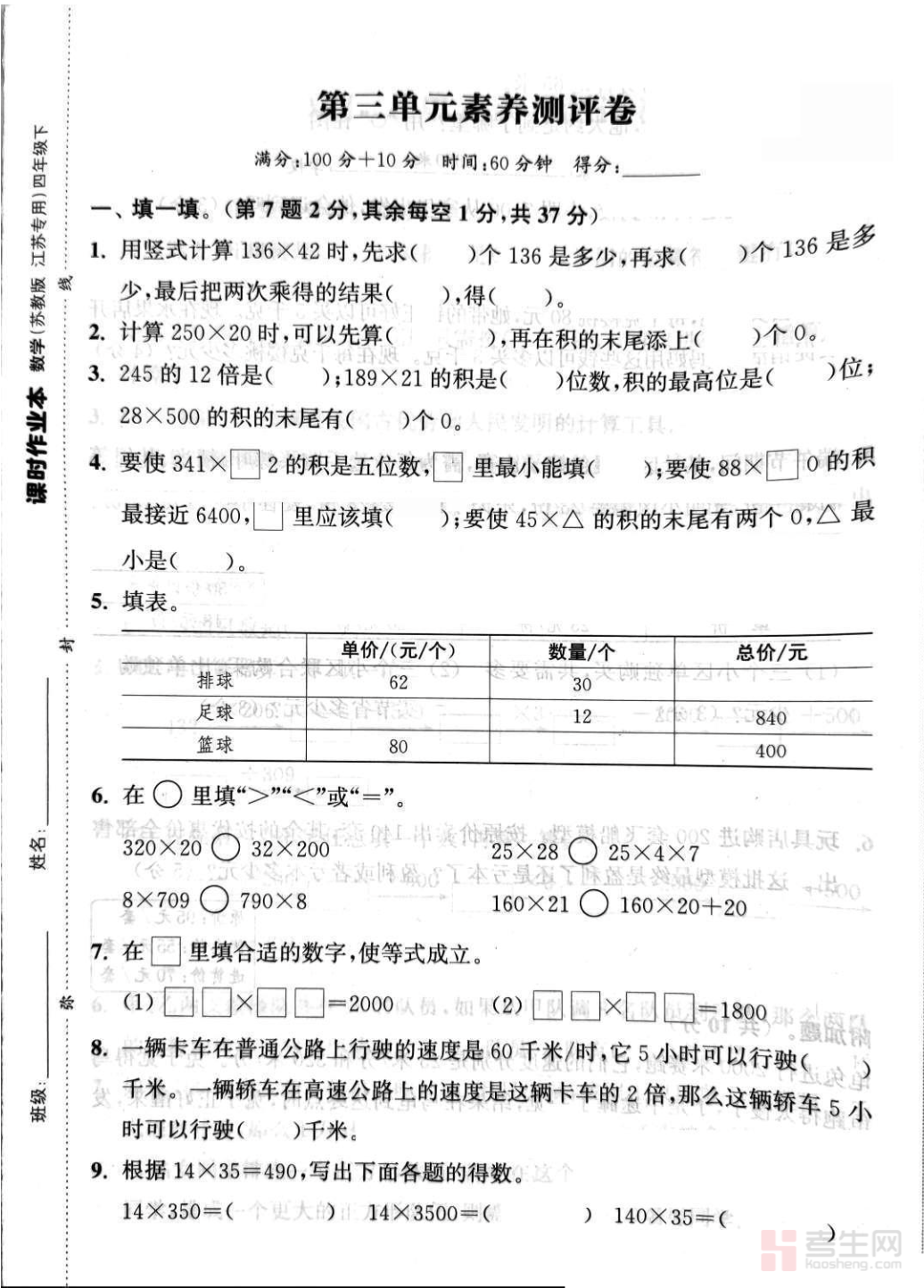 小学数学第三单元检测卷(苏教版)(四年级下)同步苏教版四年级下册数学教材第三单元内容,全面覆盖三位数乘两位数计算、积的变化规律、常见数量关系、乘数末尾有 0 的简便运算、解决实际问题等核心考点,题型包含填空、选择、计算、应用题等,注重考查计算准确率、运算技巧运用、数量关系分析、解题步骤规范,难度贴合课堂教学与单元检测标准。试卷结构合理、考点全面,适合四年级学生单元自测、课后巩固、查漏补缺、考前练习,有效检验学习成果,强化计算能力与数学应用水平。请添加微信 18617049513 进专属群,获取更多免费资源!