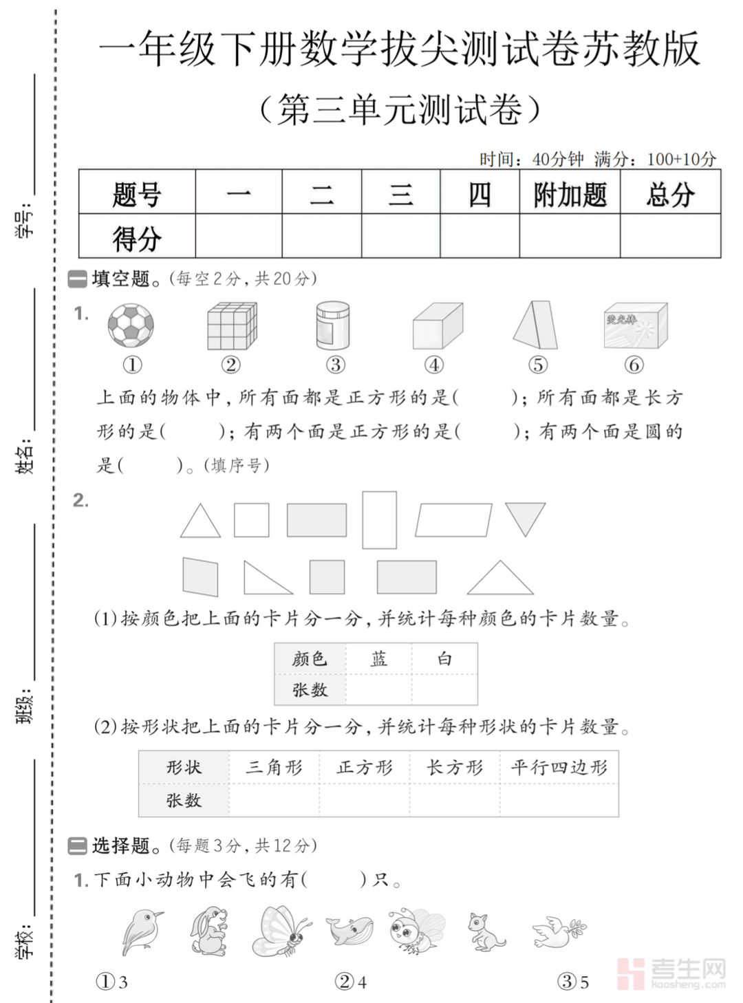 小学数学第三单元检测卷(苏教版)(一年级下)依据苏教版一年级下册数学教材第三单元内容精心编写,全面覆盖认识 100 以内的数、数的组成、读数写数、数的顺序、大小比较及简单实际问题等核心考点,题型包含填空、选择、连线、看图写数、简单应用题等,图文结合、难度适宜,贴合低年级课堂检测标准,着重考查数感培养、数字认读、数位理解、简单比较与应用能力,题目设计贴近小学生认知特点。适合一年级学生单元自测、课堂练习、课后巩固、考前复习,有效检验知识掌握情况,夯实认数基础,提升数学学习兴趣与应试能力。请添加微信 18617049513 进专属群,获取更多免费资源!