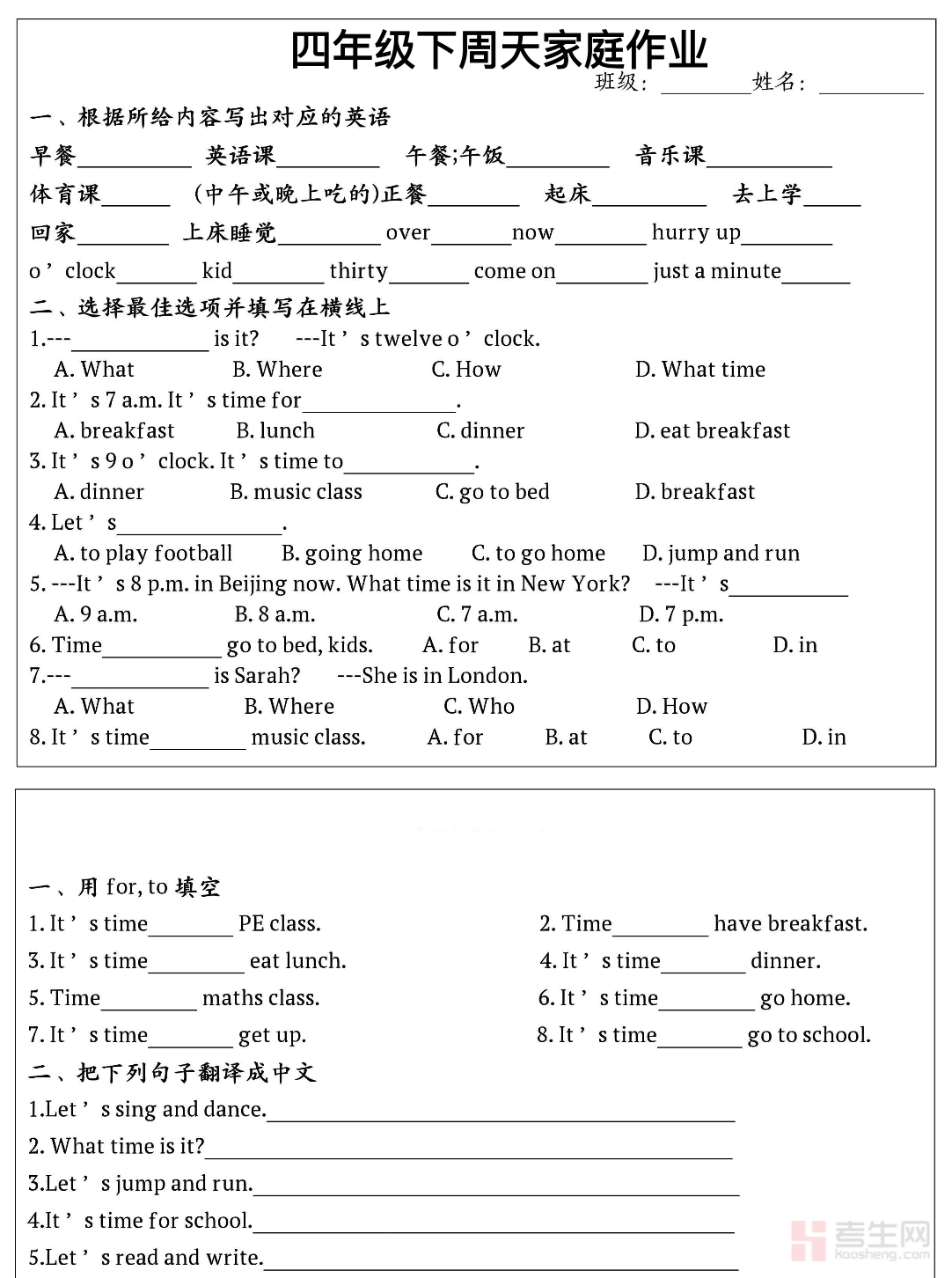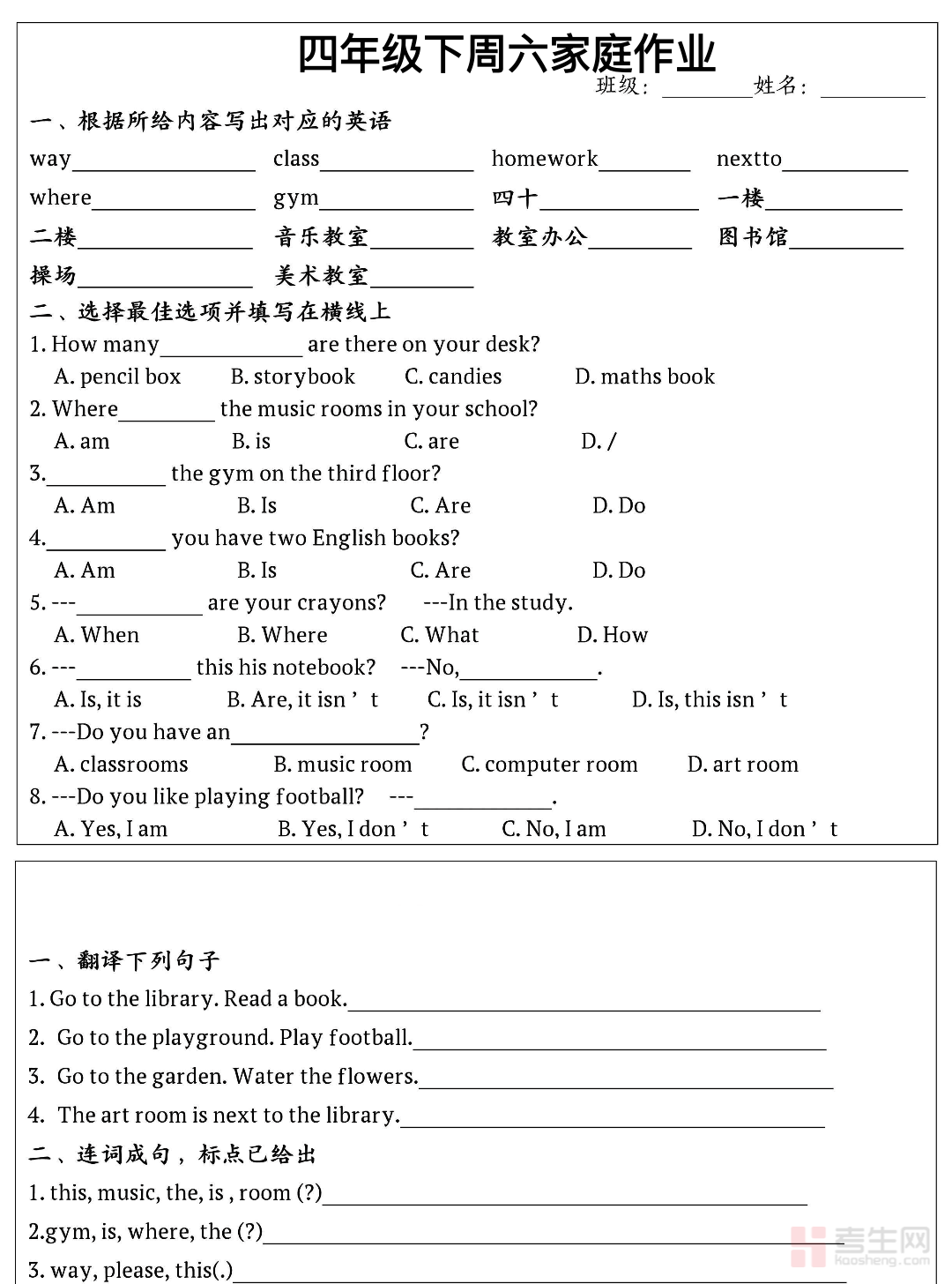 小学英语周末家庭作业(四年级下)同步部编版四年级下册英语教学进度,围绕每周课堂知识点设计,全面覆盖基础单词、常用句型、情景交际用语、字母发音规律、简单英汉互译等核心内容,题型包含单词书写、单项选择、情景选择、句子排序、补全对话和短篇阅读理解,侧重培养学生单词记忆、句型运用、规范书写、基础阅读与简单表达能力,题量适中、难度贴合四年级水平,适合周末巩固练习。适合四年级学生周末复习、课堂内容巩固、单元查漏补缺、培养英语学习习惯,有效夯实英语基础,提升课堂学习效率与应试能力。请添加微信 18617049513 进专属群,获取更多免费资源!