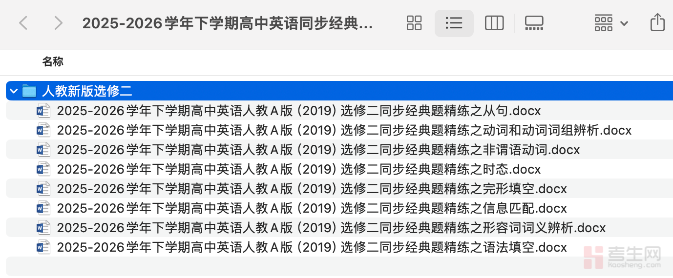 2025-2026 学年下学期高中英语人教 A 版(2019)选修二同步经典题精练合集为无水印可编辑 Word 版资料,完全贴合教材单元进度,精选各模块高频考点与典型题型,覆盖词汇辨析、重点句型、长难句分析、语法应用、阅读理解、七选五、完形填空及书面表达等核心内容,题目由基础巩固到能力提升分层设计,针对性强、实用性高,方便教师备课组卷与学生自主刷题练习,能有效帮助学生同步夯实知识点、梳理解题思路、提升答题技巧与应试能力,助力高二下学期英语学习稳步提分。请添加微信 18617049513 进专属群,获取更多免费资源!