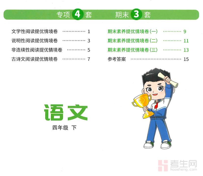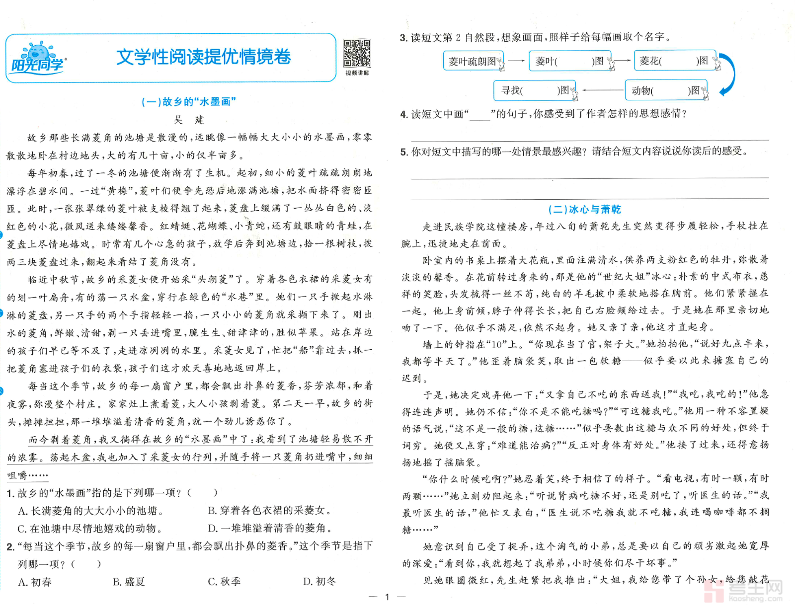 小学语文阳光同学情境卷(四年级下)同步部编版四年级下册语文教材,采用情境化命题设计,贴合课堂教学与单元检测要求,全面覆盖生字词语、句子仿写、课内片段阅读、课外阅读、古诗积累、看图与命题习作等核心考点,注重基础知识巩固、阅读理解能力、语言表达逻辑、答题规范的综合训练,题型丰富且难度适中,梯度合理,贴近校内考试形式。适合四年级学生单元自测、课后巩固、期中期末复习与考前模拟,帮助学生系统梳理知识点、查漏补缺,稳步提升语文综合素养与应试能力。请添加微信 18617049513 进专属群,获取更多免费资源!