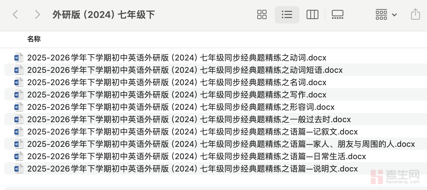 2025-2026 学年下学期初中英语外研版(2024)七年级同步经典题精练合集(无水印 可编辑 Word 版)同步外研版七年级下册教材单元内容,全面覆盖名词、代词、介词、动词时态、形容词副词、情景交际、句型转换等核心语法与词汇考点,精选单项选择、语法填空、短文填空、句型转换等常考经典题型,注重基础巩固、语境运用、易错点突破、解题技巧归纳。资料为无水印可编辑 Word 格式,方便打印使用与二次修改,适配课堂练习、课后作业、单元自测及期中期末复习,帮助七年级学生扎实夯实英语基础,稳步提升答题准确率与综合应试能力。请添加微信 18617049513 进专属群,获取更多免费资源!