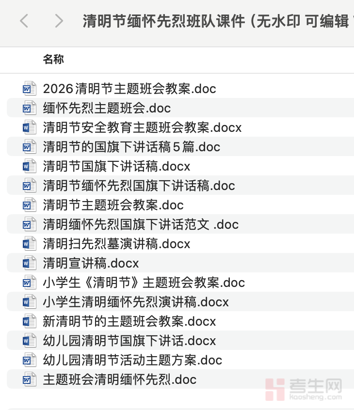 清明节缅怀先烈班队课件(无水印 可编辑 Word 版)专为中小学班队活动设计,紧扣清明节缅怀先烈、传承红色精神的核心主题,内容涵盖先烈事迹介绍、清明节由来与习俗、红色精神解读、缅怀先烈倡议等板块,搭配简洁易懂的文字、适配班队课堂的排版,兼顾教育性与趣味性。课件为无水印可编辑 Word 版,方便教师根据班级实际情况修改内容、添加班级特色元素,无需复杂编辑技巧。适用于小学、初中各年级班队会、主题教育活动,既能引导学生铭记先烈事迹、传承爱国精神,又能培养学生的家国情怀,是班主任开展清明节主题教育的优质辅助材料。请添加微信 18617049513 进专属群,获取更多免费资源!