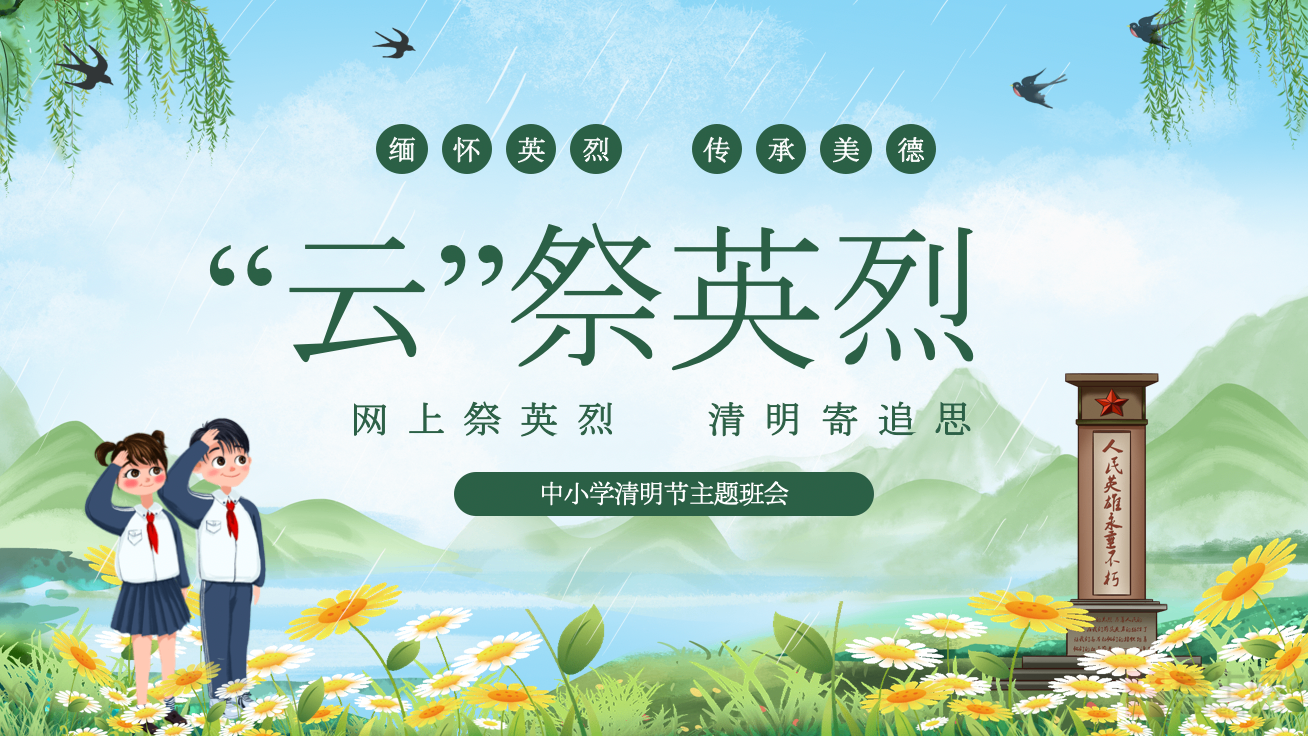 清明节缅怀先烈班队课件合集,专为中小学班主任打造,聚焦清明节缅怀先烈、传承红色基因的核心教育主题,包含多套差异化课件,适配小学低年级、小学高年级、初中各年级班队会需求。课件内容全面,涵盖先烈英雄事迹、清明节起源与习俗、红色精神传承、缅怀倡议、互动问答等板块,排版简洁清晰、图文适配,兼顾教育性与趣味性,无需复杂编辑即可直接使用。合集贴合校园主题教育要求,侧重引导学生铭记先烈、致敬英雄,培养家国情怀与责任担当,是班主任开展清明节主题班队会、红色教育活动的优质辅助材料,省心高效,助力顺利开展主题教育。请添加微信 18617049513 进专属群,获取更多免费资源!