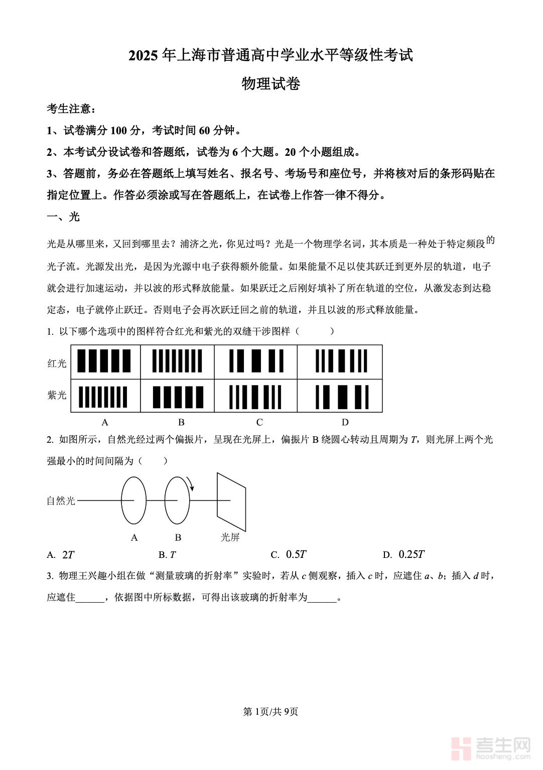2025 高考真题(上海卷)物理(含答案解析)完整收录 2025 年上海高考物理等级考真题,贴合上海卷命题特色,全面覆盖力学、电磁学、热学、光学、原子物理、实验探究等核心模块,配套详细答案与逐题解析。解析聚焦考点拆解、解题思路、公式推导、易错警示、规范答题,深度贴合上海卷 “情境统领、素养立意” 的命题导向上海市教育考试院。资料可直接用于真题演练、考后估分、高三一轮二轮复习,助力学生把握上海高考物理命题规律、夯实基础、提升解题能力,适配上海本地考生备考需求。请添加微信 18617049513 进专属群,获取更多免费资源!