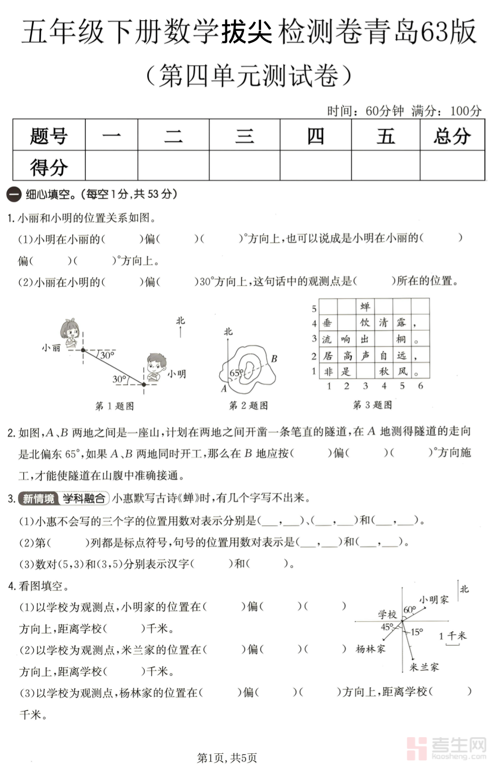 小学数学第四单元拔尖测试卷(青岛 63 版五年级下)同步青岛版 63 制五年级下册数学教材第四单元内容编写,作为专项备考资料,全面覆盖分数的意义和性质、分数与除法的关系、真分数假分数、分数的基本性质、约分通分等核心知识点,题型包含填空、选择、判断、计算、解决问题等常考形式,注重基础巩固、易错辨析、计算规范、综合应用,难度由浅入深设置拔尖题型,强化学生对分数概念的理解与灵活运用能力。试卷贴合单元检测与阶段性复习要求,适合课堂小测、家庭练习及考前查漏补缺,有效提升数学解题能力与应试得分。请添加微信 18617049513 进专属群,获取更多免费资源!