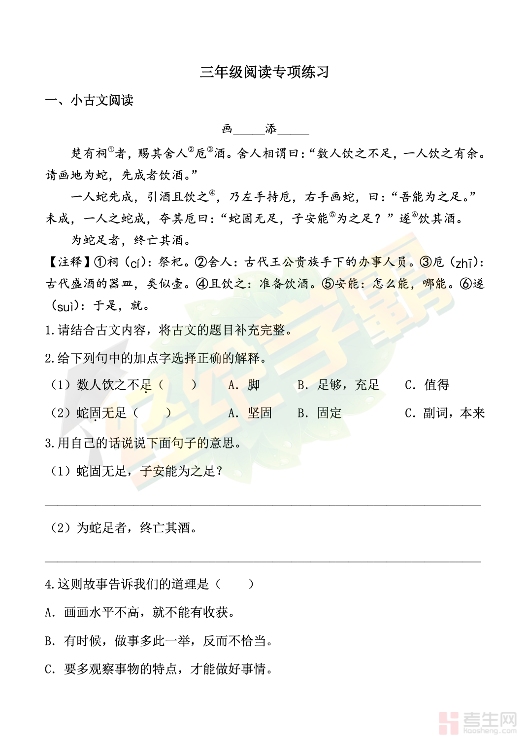 小学语文清明阅读专项练习(三年级下)紧扣三年级下册语文阅读能力要求,以清明节气与传统节日文化为主题编写,是实用性较强的语文备考资料。阅读素材涵盖节日传说、民俗风情、经典诗文与写景叙事短文,题型包含字词理解、句子赏析、段落大意概括、信息筛选整合、情感体会与简单表达运用,重点强化阅读答题规范、概括能力、细节理解、传统文化认知,针对期中期末常考阅读题型进行专项突破。素材贴近生活,难度贴合学段,适合课堂训练、节日拓展与考前查漏补缺,全面提升学生阅读理解与应试答题水平。请添加微信 18617049513 进专属群,获取更多免费资源!