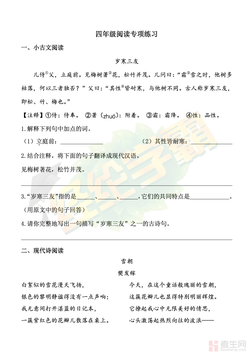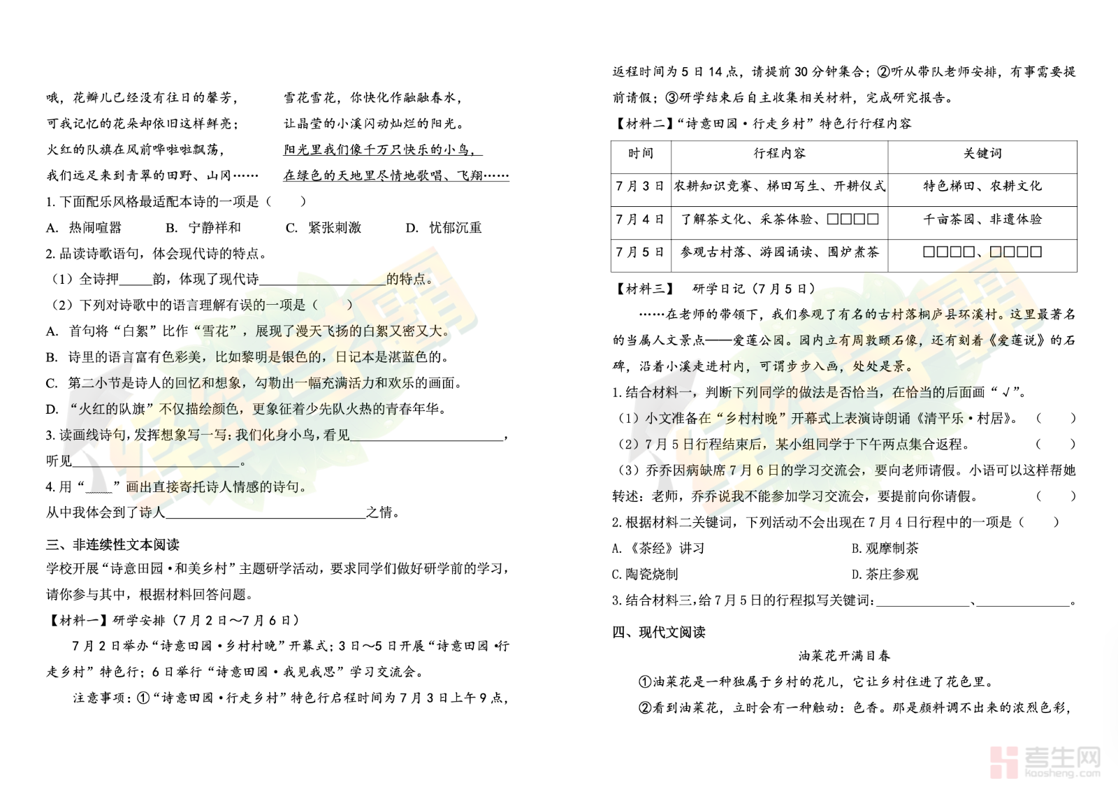 小学语文清明阅读专项练习(四年级下)围绕清明节日文化、节气特点、传统习俗及相关经典篇目精心编写,贴合四年级下册语文阅读考查标准,是实用的专题备考资料。内容包含叙事短文、写景片段、民俗介绍、古诗文拓展等多种文体,题型覆盖重点字词理解、关键语句赏析、段落结构分析、信息提取归纳、中心思想把握、情感体悟表达,着重强化精读能力、答题逻辑、概括水平、规范作答,有效突破阅读易错点与失分点。资料主题鲜明、难度适中,适合课堂专项训练、课后拓展练习及期中期末复习使用,在提升阅读应试能力的同时加深传统文化认知。请添加微信 18617049513 进专属群,获取更多免费资源!