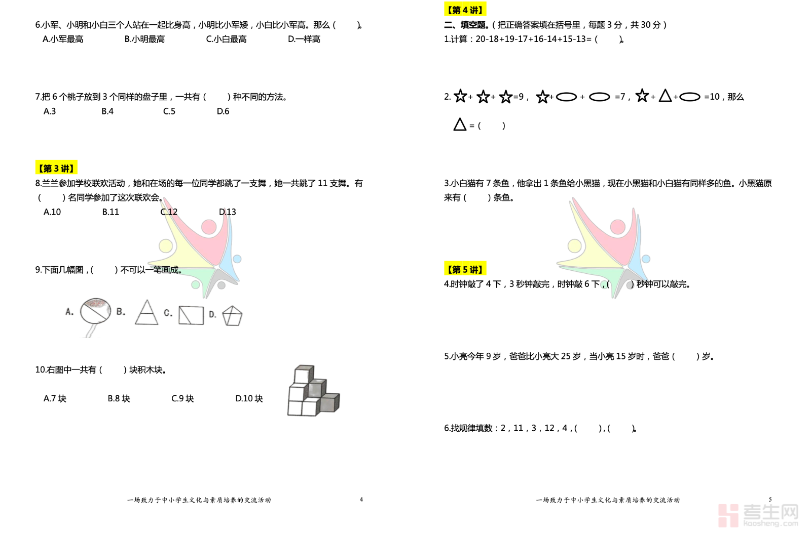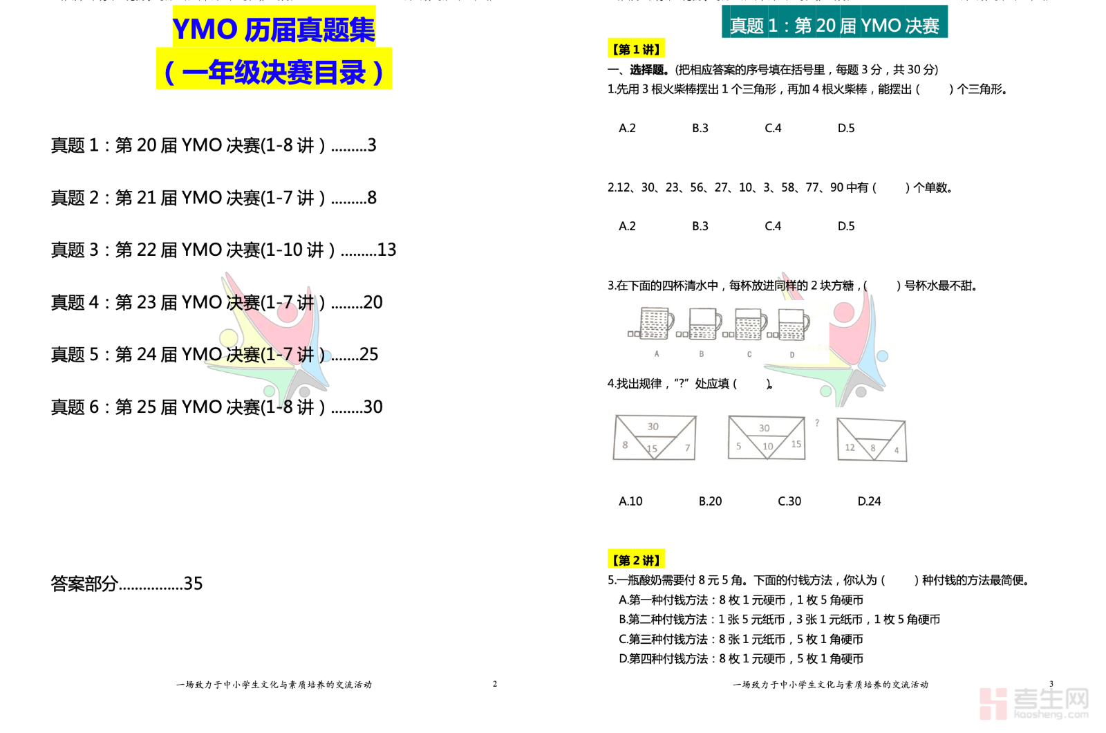 YMO 历届真题集(一年级 决赛)精选多届 YMO 青少年数学奥林匹克一年级决赛真题,严格贴合低年级数学竞赛考纲与命题特点,是幼小衔接及一年级竞赛备考的优质资料。内容涵盖20 以内加减法、数图形、找规律、比多少、简单分类、排队问题、图文应用题等核心考点,题型以填空题、口算题、观察判断题、简单操作题为主,难度适配一年级学生认知水平。每道真题均配有详细易懂的解析,重点训练计算速度、观察能力、简单逻辑与审题习惯,帮助孩子熟悉竞赛题型与答题节奏。资料实用性强,适合赛前模拟、专项练习与查漏补缺,助力孩子轻松应对决赛、提升数学思维。请添加微信 18617049513 进专属群,获取更多免费资源!