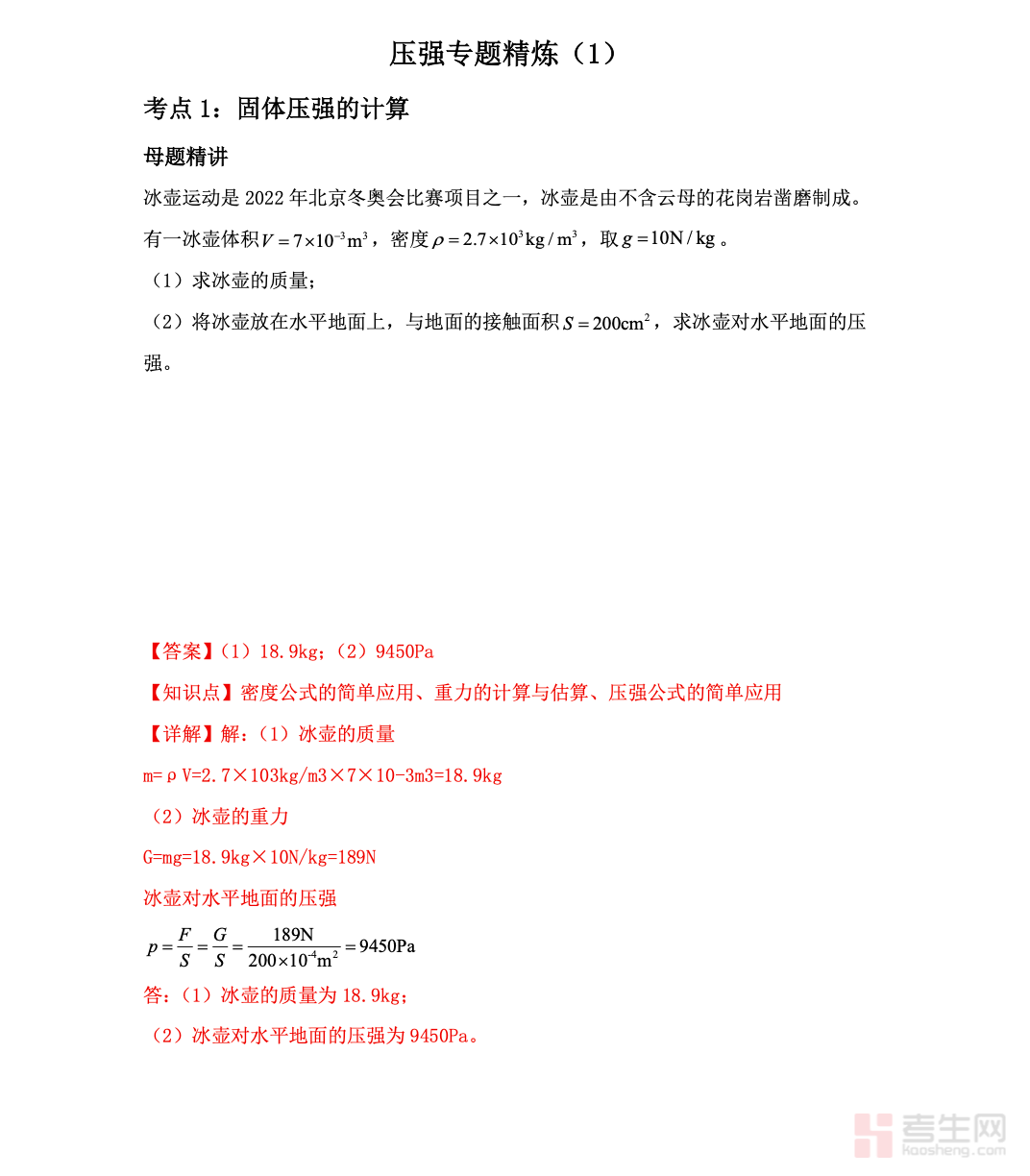 初三物理 压强专题精炼(1),聚焦初三物理力学核心考点,系统梳理固体压强、液体压强、大气压强及流体压强与流速关系等重点内容。资料紧扣中考考纲,对压强公式、影响因素、实验探究、典型模型与解题方法进行精炼归纳,搭配高频例题与专项训练,帮助学生理清思路、突破易错点。内容重点突出、实用性强,适合新课巩固、单元复习及中考冲刺使用,助力学生扎实掌握压强知识,提升计算题、实验题与综合应用题得分能力,夯实力学核心基础。