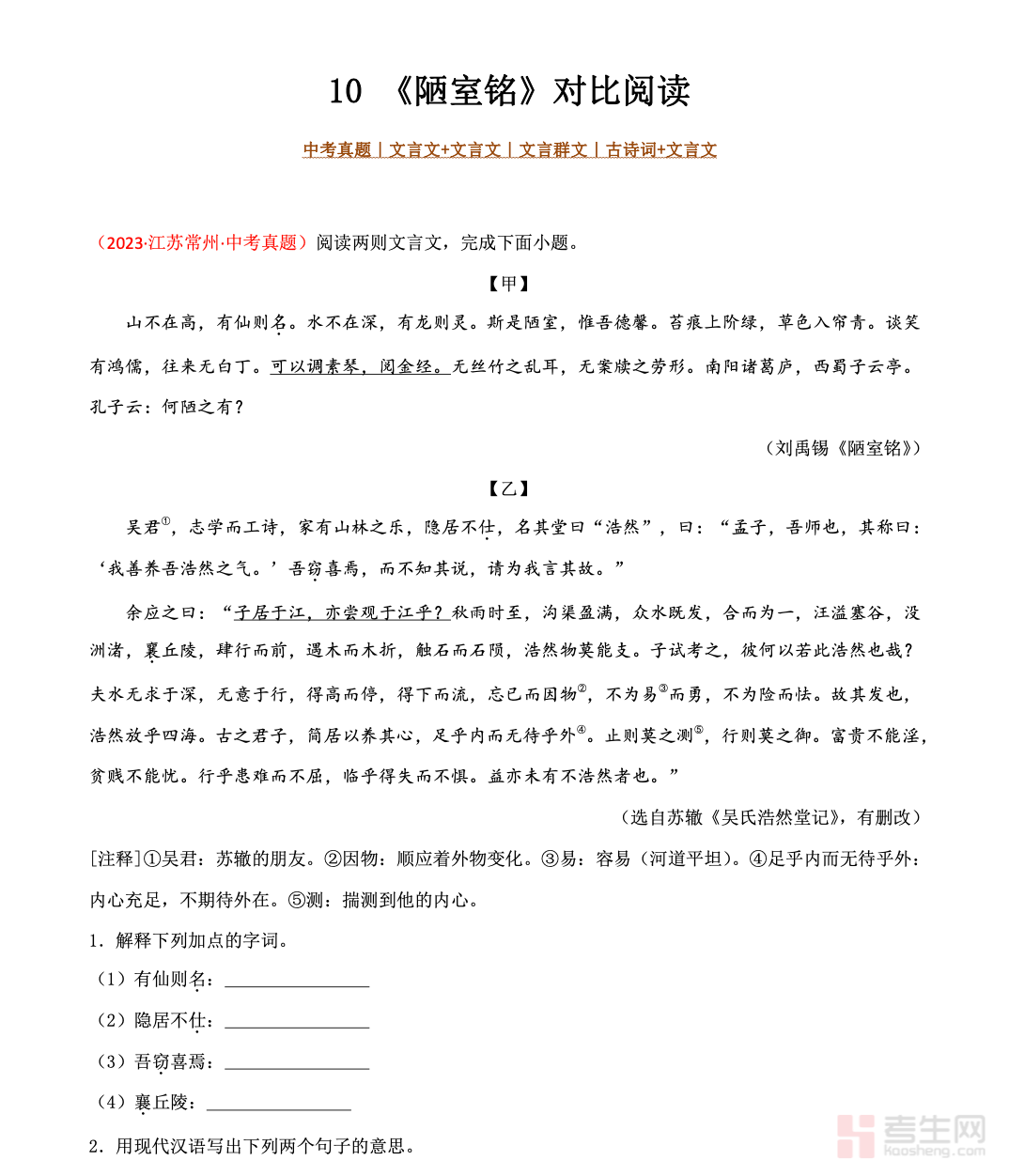 九年级语文《卖油翁》对比阅读(原卷版)紧扣中考文言文阅读考点,以《卖油翁》为核心,精选主题相近、写法相似、人物形象可比的经典文言短篇进行组合对比,聚焦人物形象分析、写作手法辨析、关键字词释义、重点句子翻译、主旨情感理解五大中考常考方向。每篇对比阅读均配备完整解析,详细梳理异同点对比、答题思路、得分要点,帮助学生掌握对比阅读解题技巧。资料贴合九年级复习节奏,适配课堂训练与自主备考,有效提升文言文理解与应试答题能力,冲刺中考文言阅读高分。请添加微信 18617049513 进专属群,获取更多免费资源!