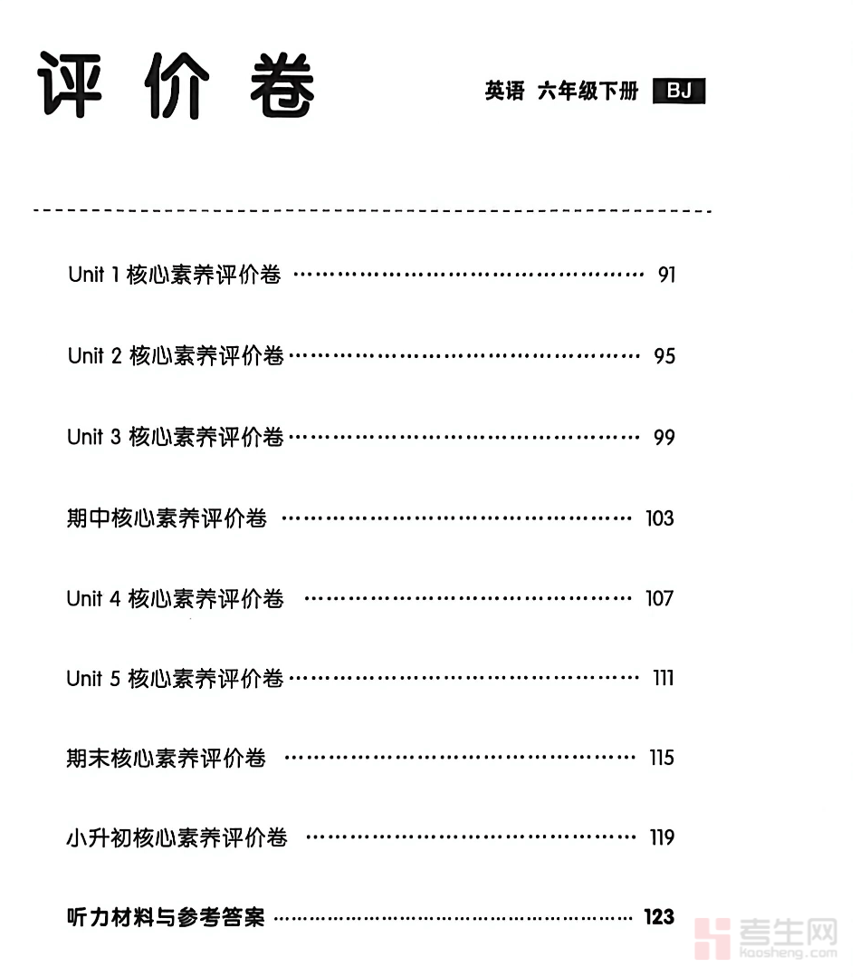 小学英语全品学练考评价卷(含答案解析)(北京版)(六年级下)严格同步北京版六年级下册英语教材内容,贴合小学高年级阶段教学目标与期末测评要求,按单元系统编排,涵盖词汇、句型、语法、情景交际、阅读理解、书面表达、听力理解等全题型考点。试卷结构贴合校内考试标准,难度梯度合理,注重基础巩固与能力综合考查,配套完整答案解析,对易错题目和核心知识点进行详细点拨,帮助学生快速定位薄弱环节。适合单元检测、期中期末模拟、小升初考前冲刺使用,有效提升英语应试能力与综合运用水平。请添加微信 18617049513 进专属群,获取更多免费资源!