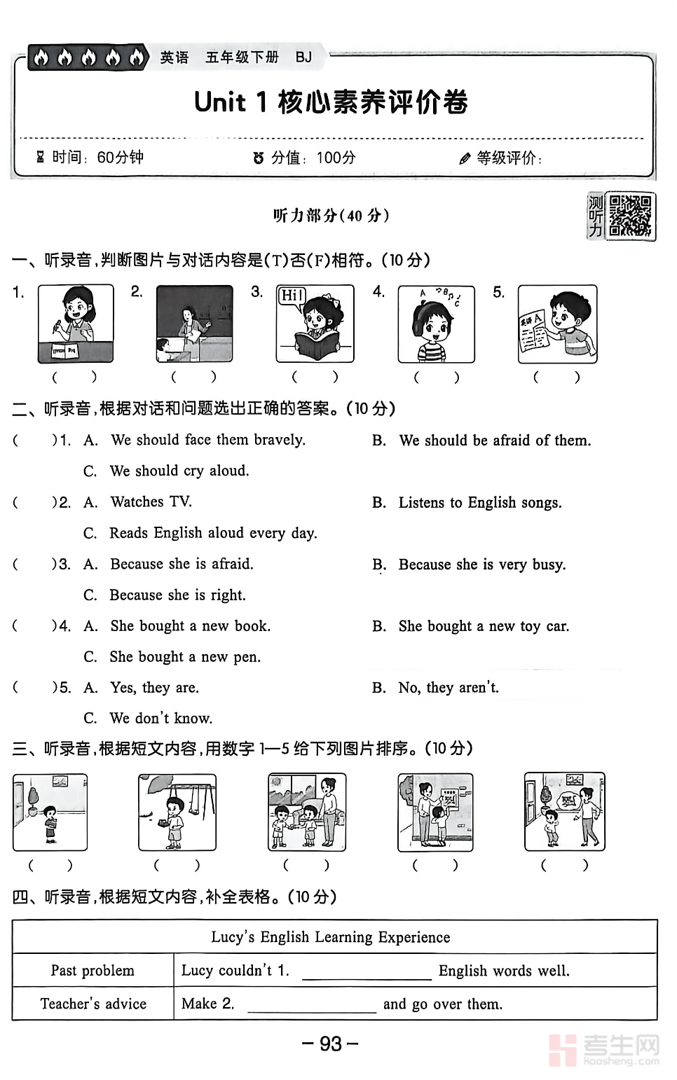 小学英语全品学练考评价卷(北京版)(五年级下)同步北京版五年级下册英语教材,贴合小学中段教学与测评标准,按单元科学编排,全面覆盖单词拼写、句型运用、语法辨析、情景对话、听力理解、短文阅读等核心考点。试卷题型规范、难度适中,贴合校内单元检测与阶段性考试命题思路,注重基础落实与能力考查。每份试卷均配套详细答案解析,对易错点、答题要点逐一点拨,方便学生自查自纠、查漏补缺。适合课堂检测、课后巩固、单元复习及考前模拟使用,帮助学生夯实英语基础,提升应试技巧与综合语言运用能力。请添加微信 18617049513 进专属群,获取更多免费资源!