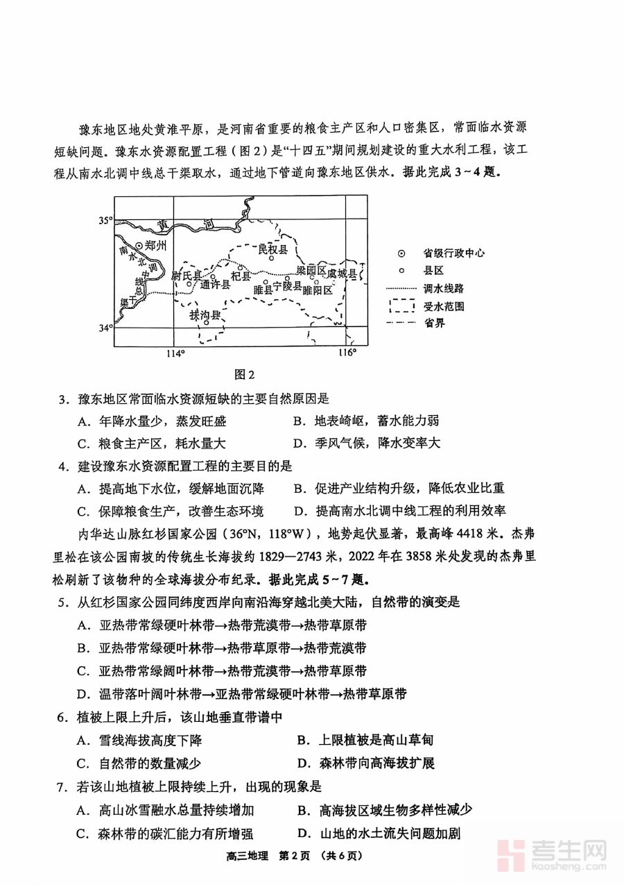 该试卷可用于高三学生在下学期3月阶段进行学情诊断,帮助师生了解当前地理学科知识掌握情况与能力水平,为后续备考策略调整和复习重点明确提供依据,同时也能让学生熟悉联考题型与考试节奏,提升应试适应性。