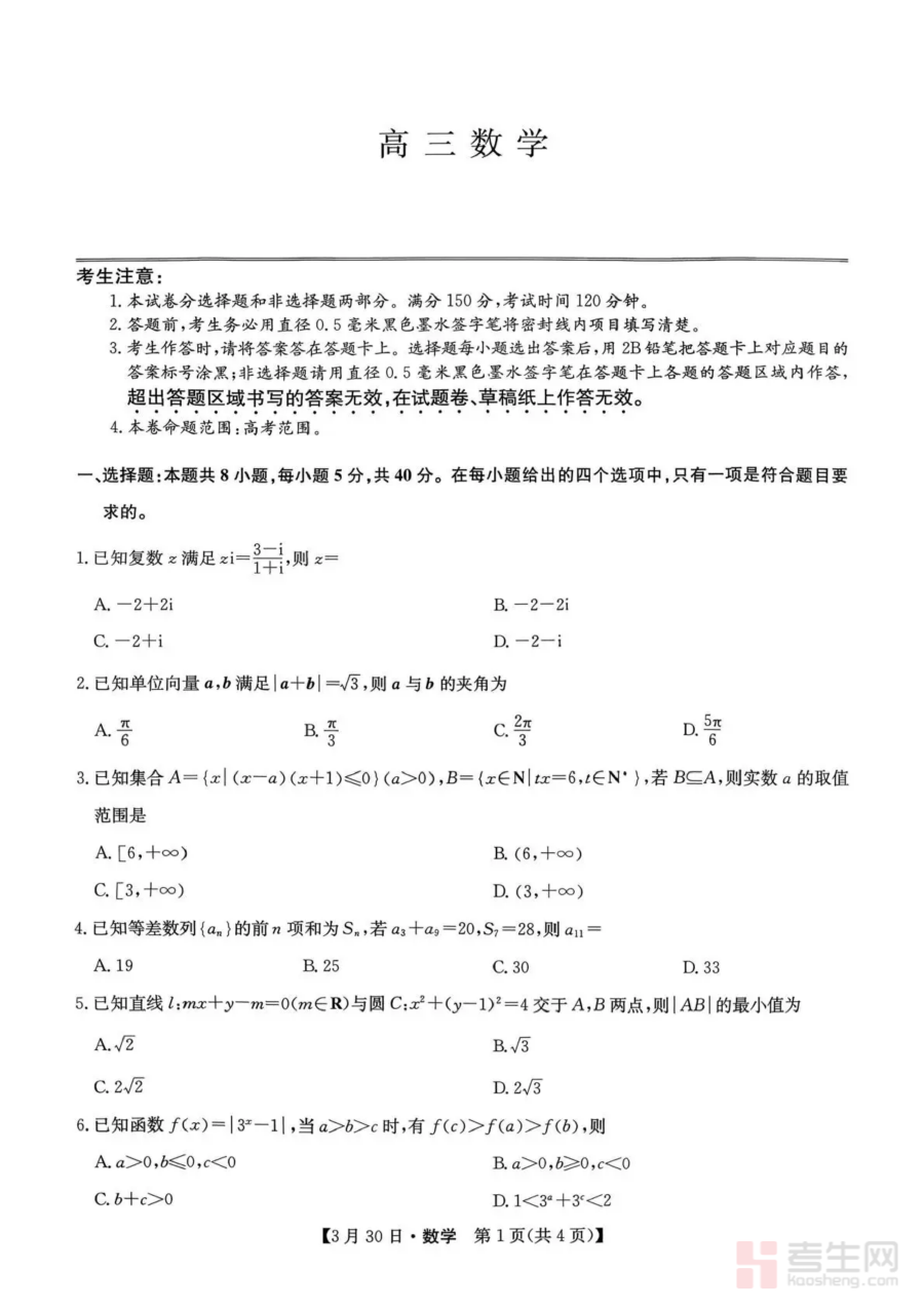 《九师联盟2026届高三3月30联考数学试题》是针对2026届高三学生开展的阶段性联合考试的数学学科试题资料。作为九师联盟组织的重要联考之一,该试题紧密贴合高三阶段的复习进度与教学要求,旨在为联盟内及相关地区的高三学生提供标准化的阶段性检测载体。它依托联盟内多所学校的教学资源与命题经验,能够有效反映高三学生在当前复习阶段的数学学科掌握情况,是高三数学备考过程中具有参考意义的阶段性资料。