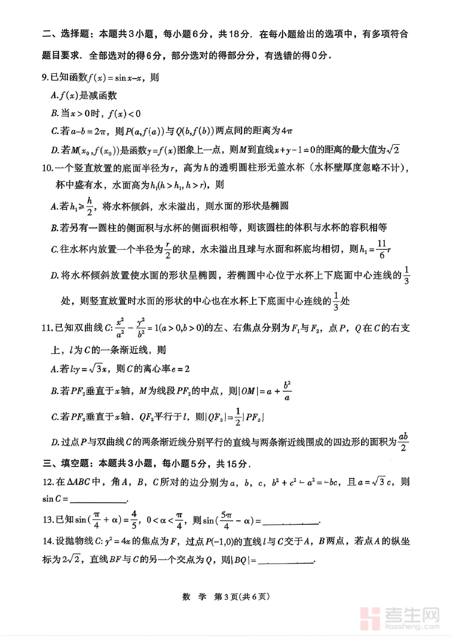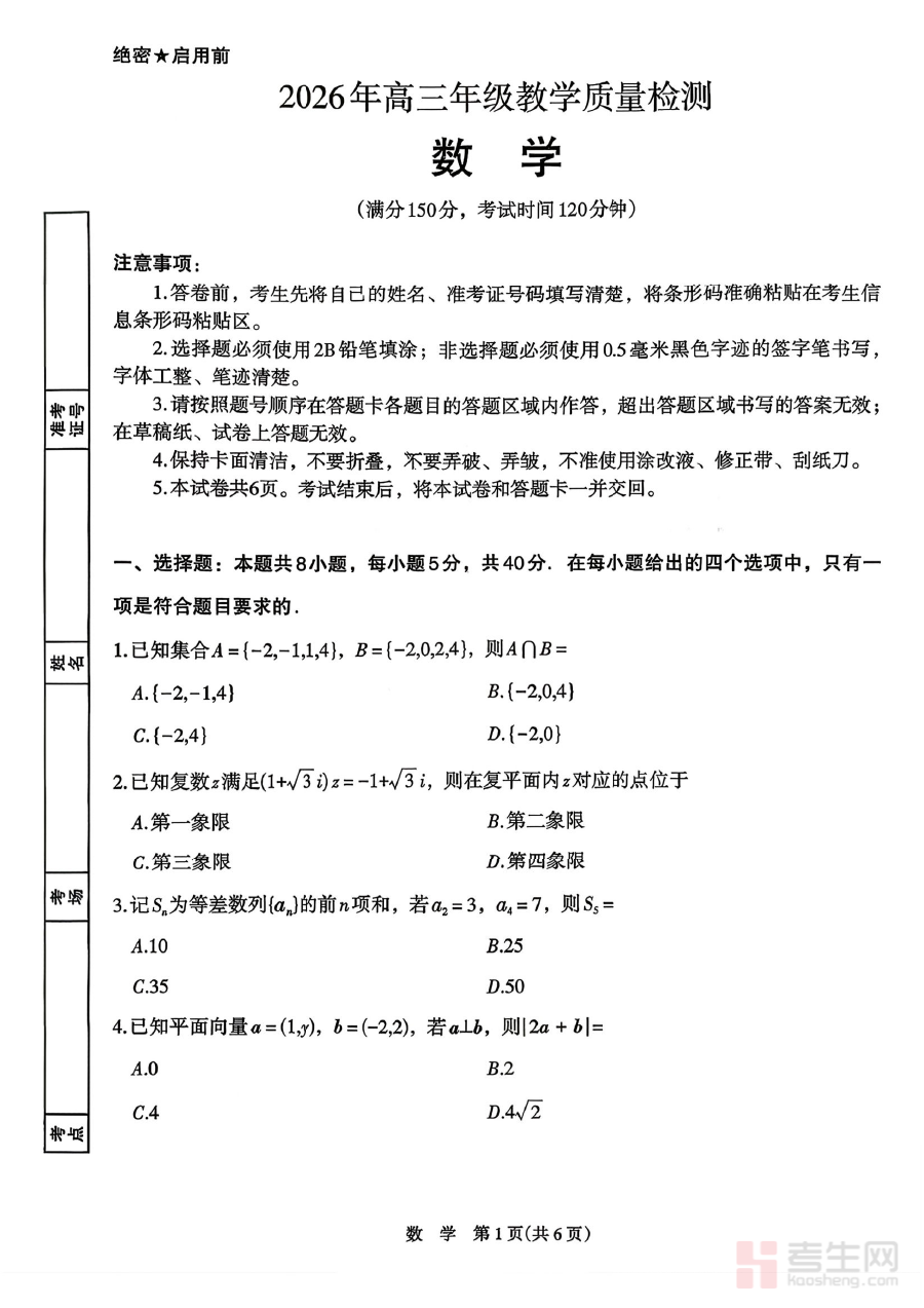 该资料可用于高三学生数学学科的阶段学情诊断,帮助教师与学生清晰掌握当前学习状况,为后续备考规划提供客观数据支撑,同时也能作为高三数学学科教学质量检测的配套参考素材,辅助教学环节的科学优化与调整。