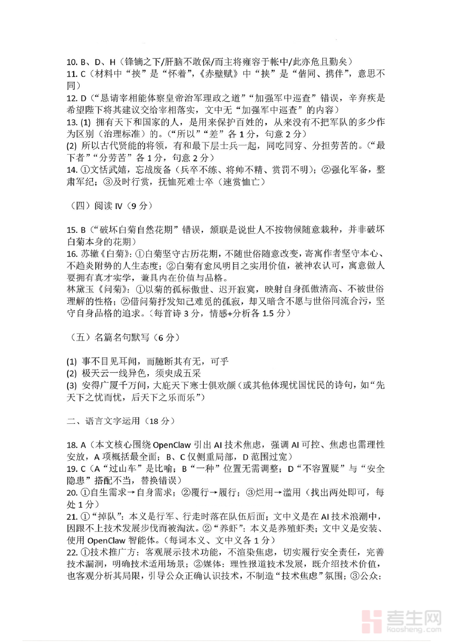本资料主要适用于2026届银川、石嘴山、吴忠三市的高三语文教师及学生群体。对于教师而言,它是开展教学质量分析、制定个性化教学方案的关键工具;对于学生来说,通过结合该答案进行阶段性检测后的反思总结,能够有效提升备考效率,强化对语文知识与能力的掌握程度,为高考前的复习冲刺奠定坚实基础。
