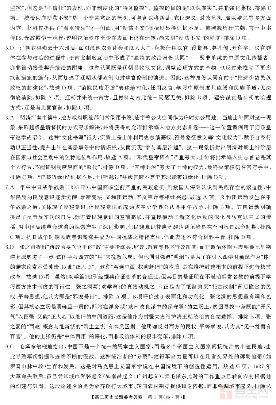 该资料的核心用途在于支持师生完成检测后的结果验证与学情分析工作。学生可通过核对答案快速确认自身答题情况,及时发现作答中的偏差;教师则能依托答案对班级整体在历史知识模块、解题思路等方面的共性问题与个体差异进行系统评估,为后续复习计划的优化和教学策略的调整提供客观数据支撑,助力提升备考效率。
