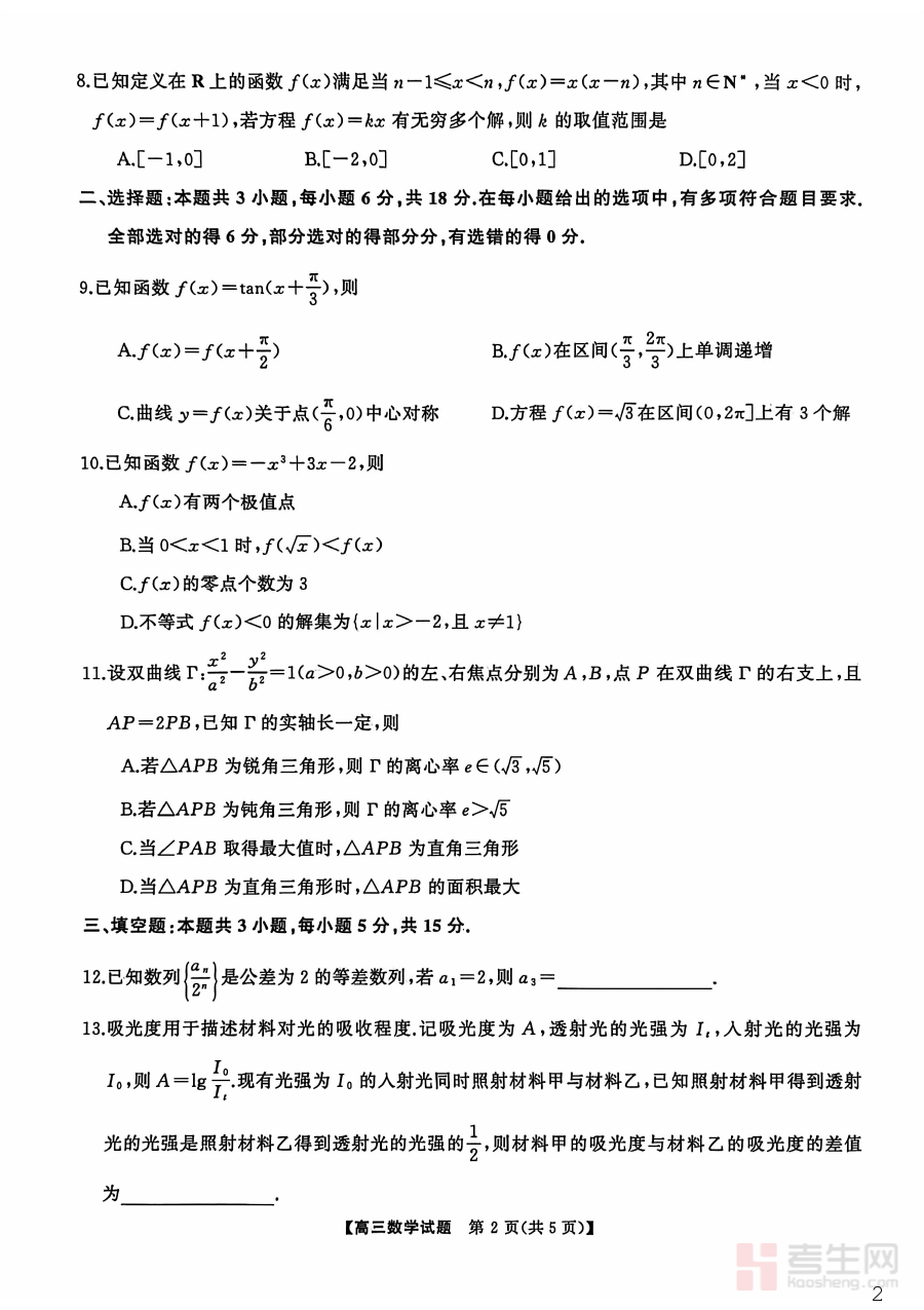 此试卷适用于2026届高三学生,尤其是参与天壹名校联盟联考的学生群体,通过完成该试卷检测,学生能清晰识别自身数学学科的优势与不足,从而优化备考策略、提升复习效率;教师也可依托试卷结果精准把握学生学习动态,开展针对性教学与辅导工作。