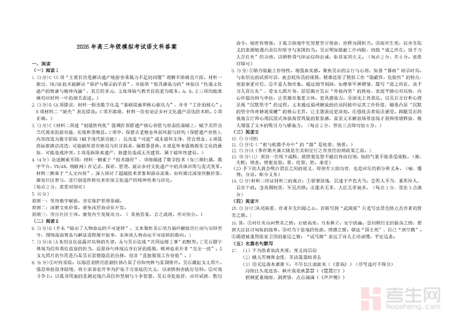 该资料具备多重实用价值,可支持高三学生开展自我学情诊断——通过独立完成试题并对照答案分析,清晰认知自身在语文知识体系、解题能力等方面的优势与不足;也能为教师提供教学效果反馈的数据支撑,帮助教师针对性调整后续教学内容与备考规划策略;同时作为阶段性检测载体,有效验证学生在特定复习阶段的语文综合能力水平,为下一阶段复习重点的确定提供可靠依据。