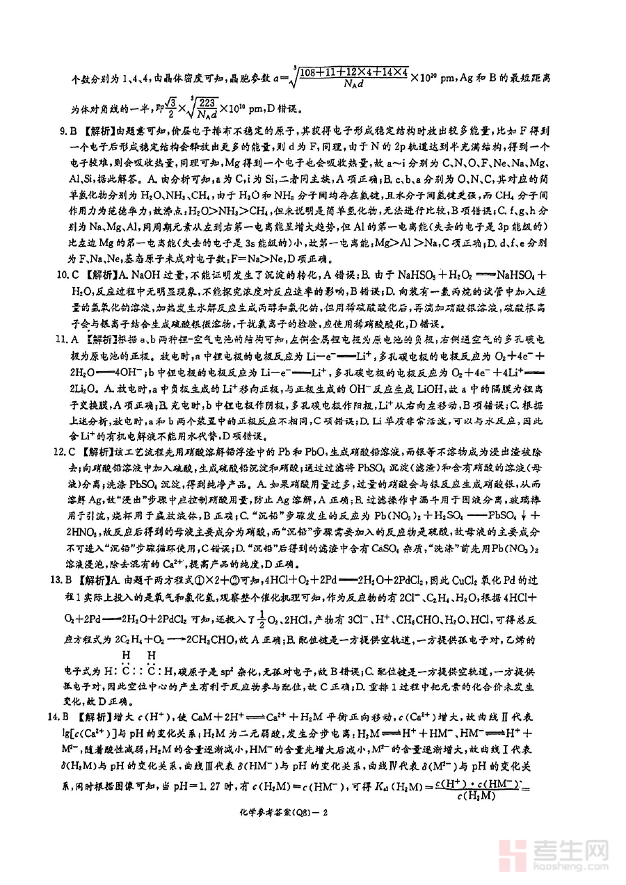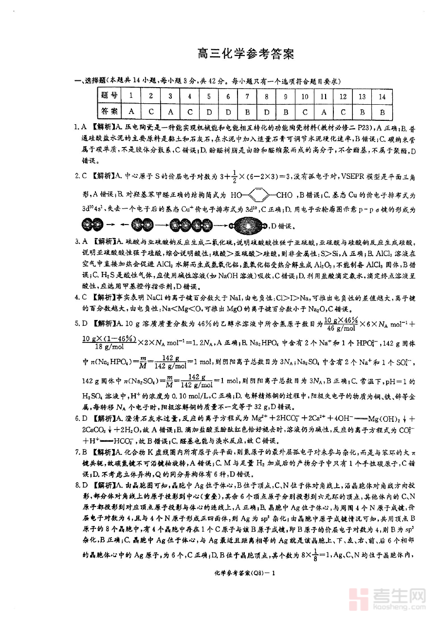 此答案资料的主要用途在于助力学情诊断与备考规划工作。通过对照该答案,师生能够快速确认检测中的答题正误情况,深入分析阶段学习中化学知识的掌握状况与薄弱环节,从而为后续的复习计划制定与调整提供科学依据,有效提升备考的针对性与有效性。