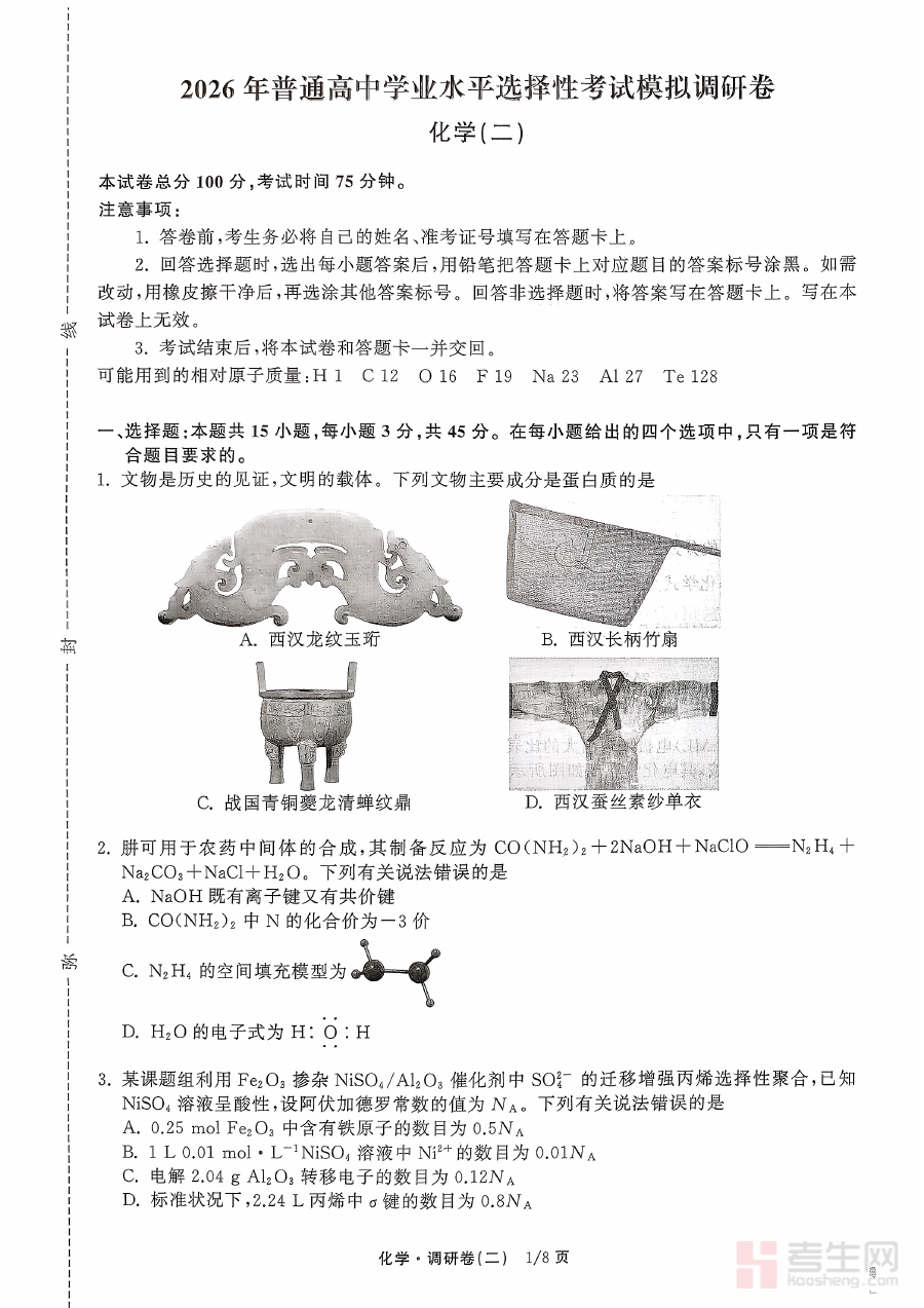 《辽宁省抚顺市清原满族自治县高级中学2025-2026学年高三下学期模拟调研卷化学试题(二)》是针对辽宁省抚顺市清原满族自治县高级中学高三学生化学学科的阶段性模拟调研资料,适配2025-2026学年下学期的备考周期,为学生提供贴合本地教学进度与考试导向的练习资源。