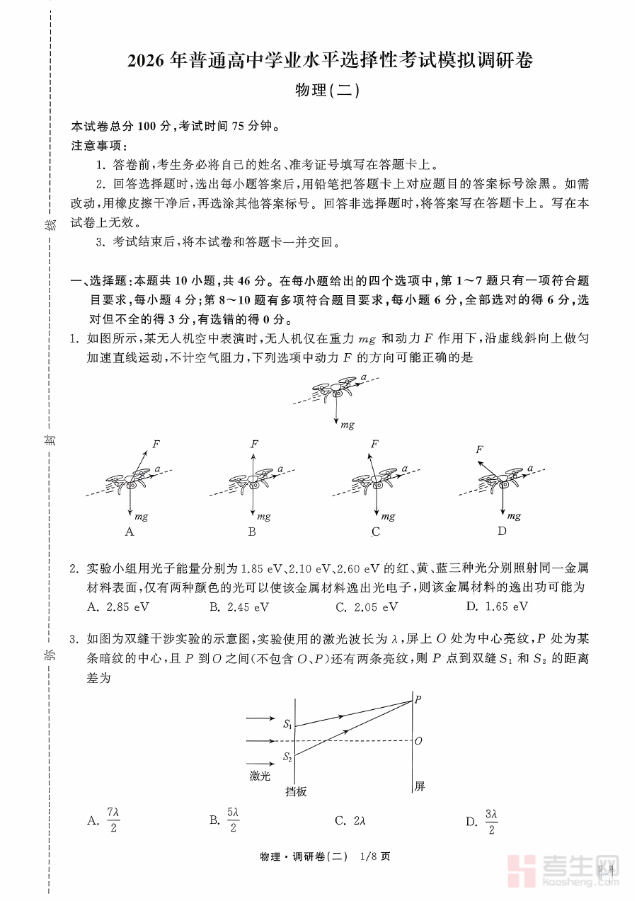 《辽宁省抚顺市清原满族自治县高级中学2025-2026学年高三下学期模拟调研卷物理试题(二)》是辽宁省抚顺市清原满族自治县高级中学针对2025-2026学年高三下学期物理学科设计的模拟调研资料,属于高三学生物理备考过程中的阶段性检测工具,贴合该学年下学期的复习进度与考查需求。