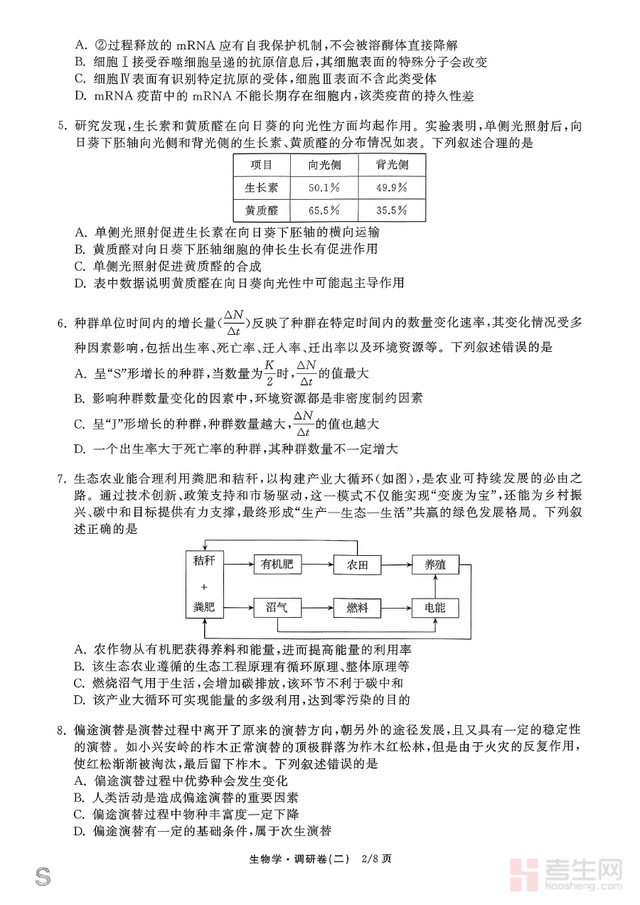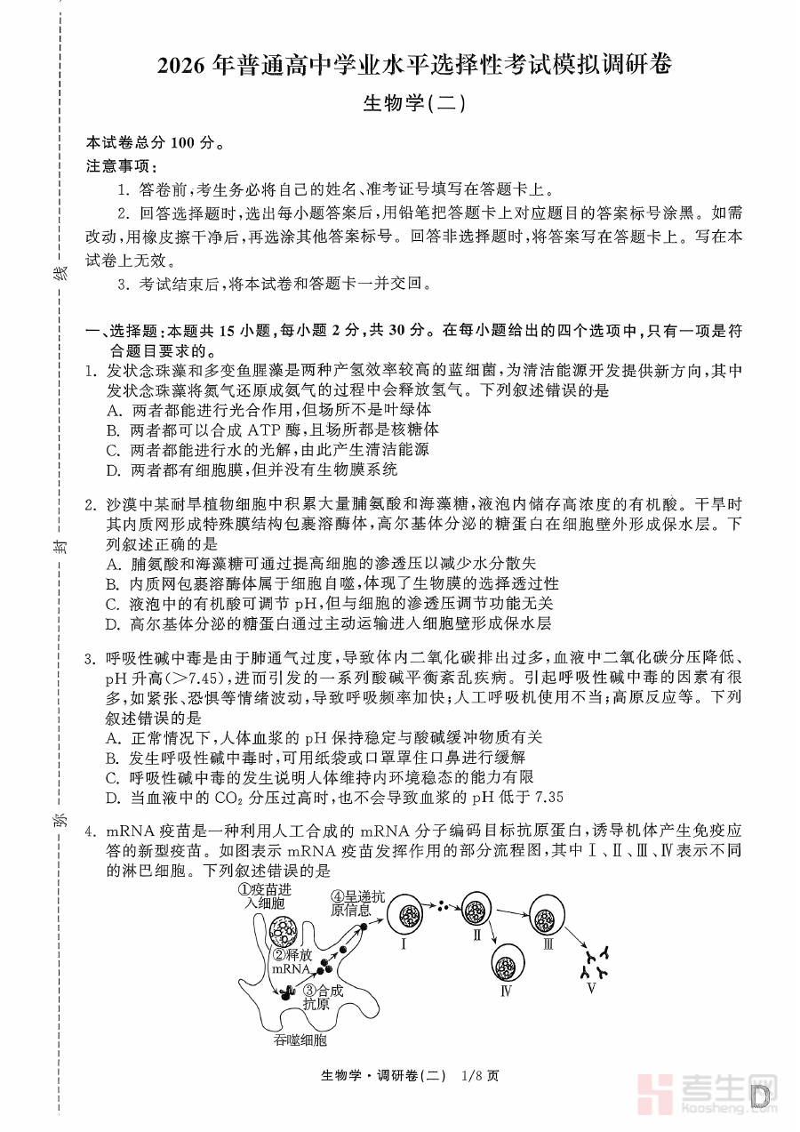 《辽宁省抚顺市清原满族自治县高级中学2025-2026学年高三下学期模拟调研卷生物试题(二)》是针对该地区高三学生生物学科备考设计的阶段性模拟资料,覆盖2025-2026学年高三下学期的关键备考时期,属于学校内部的调研检测类试题,旨在为学生提供贴合本地教学实际和备考需求的练习载体,帮助学生适应高三下学期生物学科的备考节奏与检测形式,为后续的系统性复习提供参考依据。