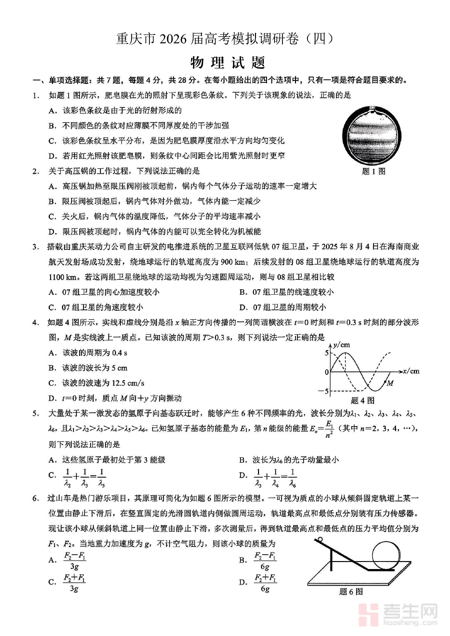 《重庆市2026年普通高等学校招生全国统一考试康德调研(四)物理+答案》是针对2026年重庆市普通高等学校招生全国统一考试设计的物理学科调研类备考资料。该资料结合重庆地区高考物理的命题趋势与考查方向,通过调研卷的形式为考生提供贴近高考要求的练习载体,包含试卷及配套答案两部分内容,旨在为考生的高考物理备考提供针对性支持,帮助考生提前熟悉高考物理的考查模式与核心方向。