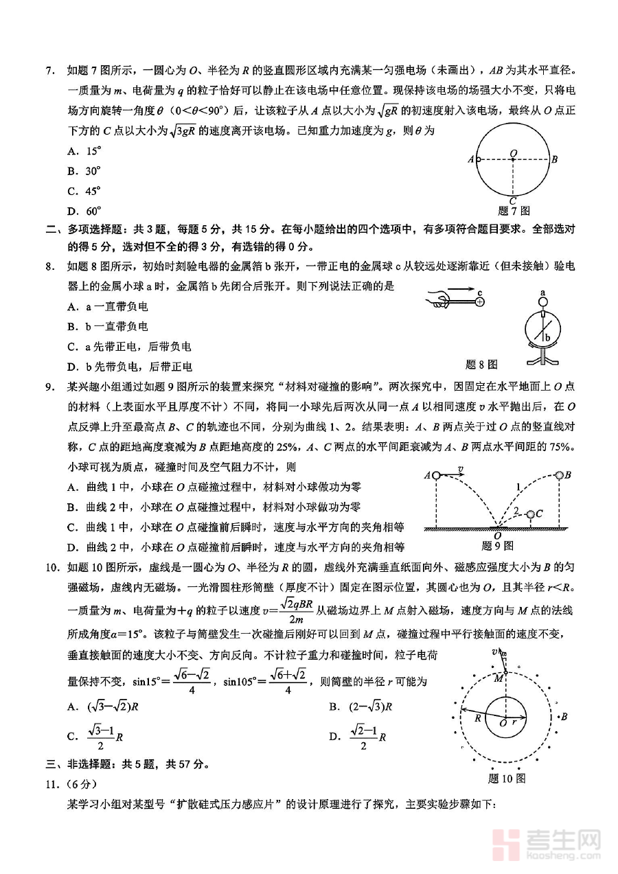 此资料可用于考生的阶段学情诊断,帮助考生在备考过程中及时掌握自身对物理知识体系的掌握程度与应用能力;同时也能为教师或考生个人的备考规划提供参考依据,通过对调研卷完成情况的分析,明确后续复习的重点模块,优化备考策略,提升复习效率,确保备考过程更具科学性与精准性。