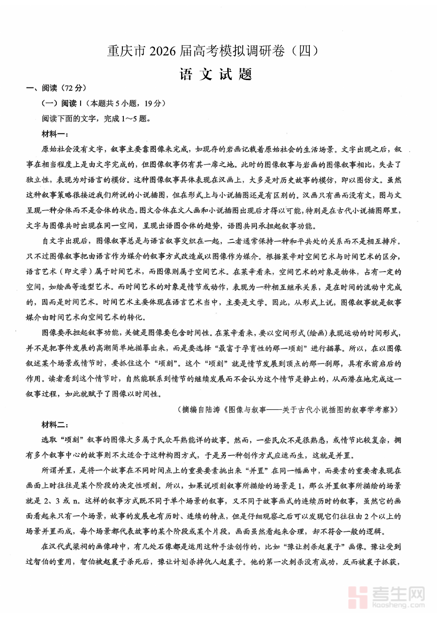 本资料适用于重庆市2026届高三年级语文考生及高三语文教师群体。对考生而言,参与该调研测试可模拟高考语文考试场景,熟悉考试流程与时间管理技巧,提升应试适应性与答题质量;对教师而言,该资料可作为阶段检测工具,辅助开展教学评估与个性化辅导,助力考生在高考备考过程中逐步提升语文综合能力。