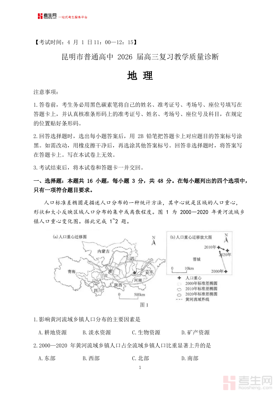 此资料适用于云南昆明市2026届高三地理教师及学生群体,教师可利用其开展教学效果评估与教学计划优化工作,提升复习指导的精准性;学生通过完成诊断练习并结合答案进行分析,能够清晰认知自身学习状况,强化知识体系构建,为高考地理备考积累实战经验并提升备考效率,为后续冲刺阶段的复习奠定坚实基础。