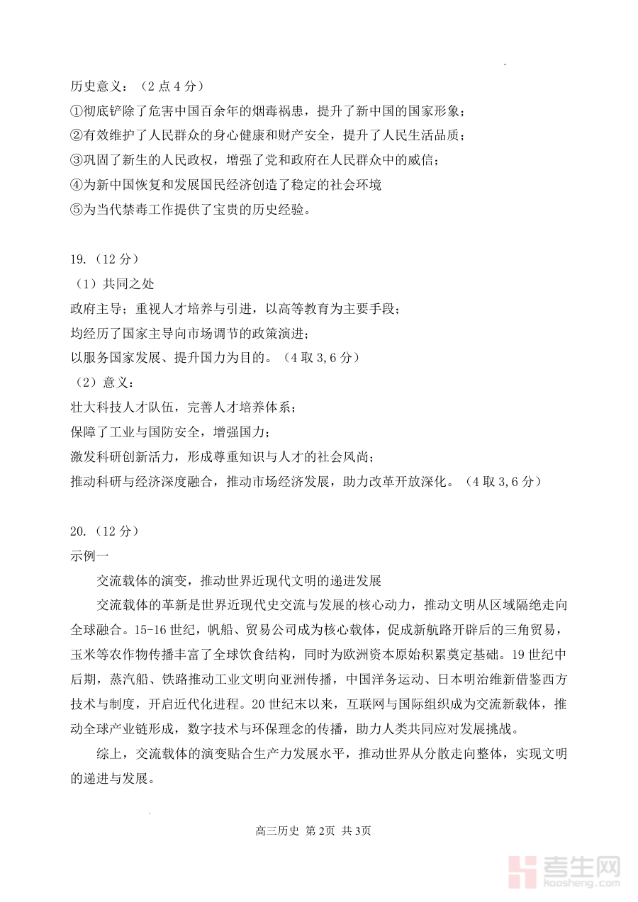该资料可用于考生核对自身答题结果,清晰识别作答过程中的知识漏洞与答题偏差,为后续历史学科的复习规划提供数据支撑与方向指引,助力考生针对性调整学习重点,提升阶段复习效率。