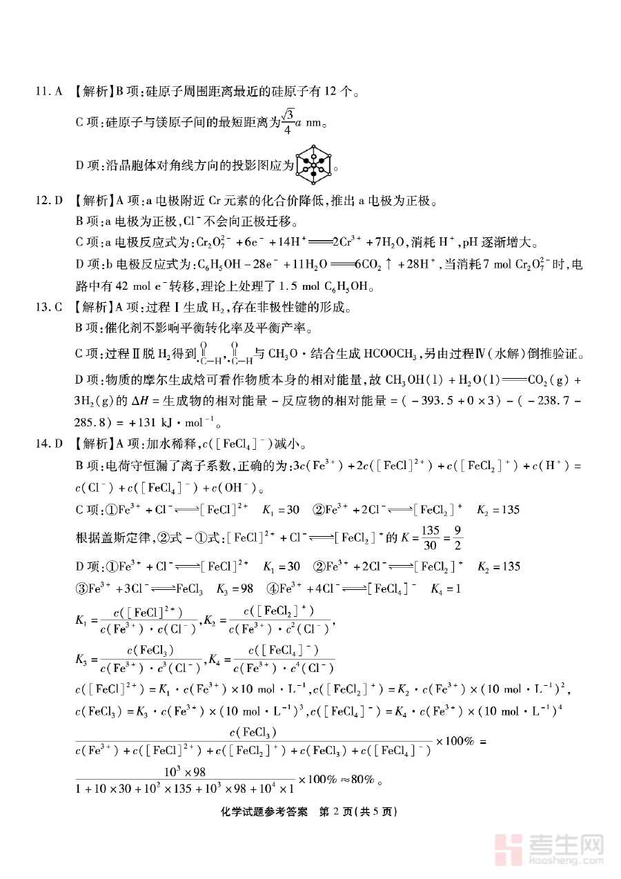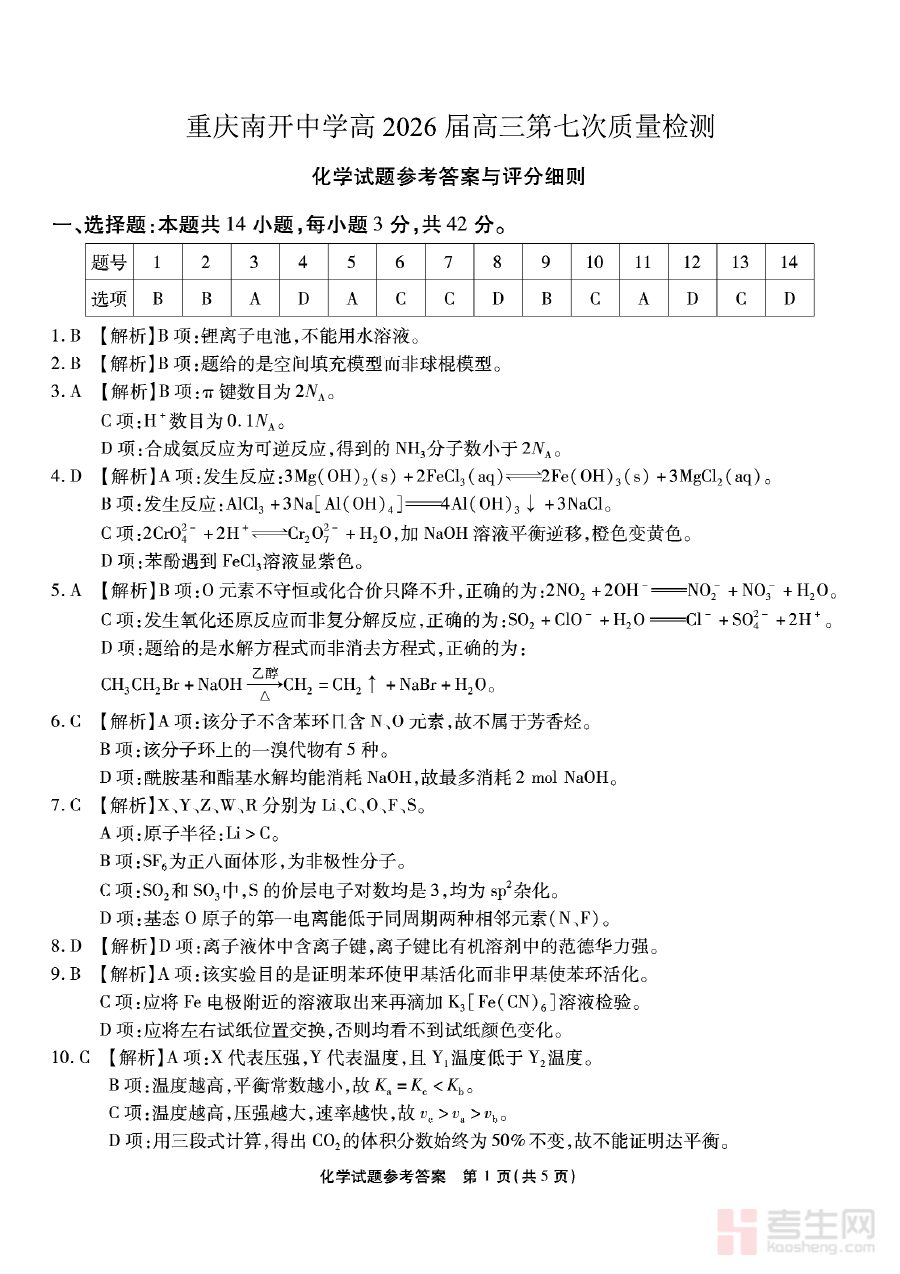 该资料主要适用于重庆市南开中学高2026届高三学生,帮助他们在完成第七次质量检测后及时进行自我反馈与查漏补缺;对于同地区或同阶段的其他高三学生而言,它可作为了解知名中学检测标准与命题思路的参考资源,提升自身备考的有效性;此外,化学学科教师也可利用这份答案分析检测的考查重点与学生答题情况,为教学改进和备考指导提供支持。
