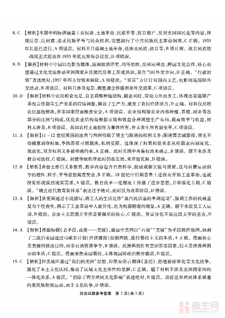 该答案资料的核心用途在于支持学情诊断与备考规划。学生可利用它对自身的检测作答情况进行快速核对,明确在历史学科知识点理解、答题规范及思维方法等方面的优势与不足;教师则能通过该资料系统分析班级整体及个体学生的检测表现,精准定位教学中的重点与难点,为后续的历史学科教学内容优化、备考策略调整提供数据支撑,确保备考方向与学生实际需求高度契合。