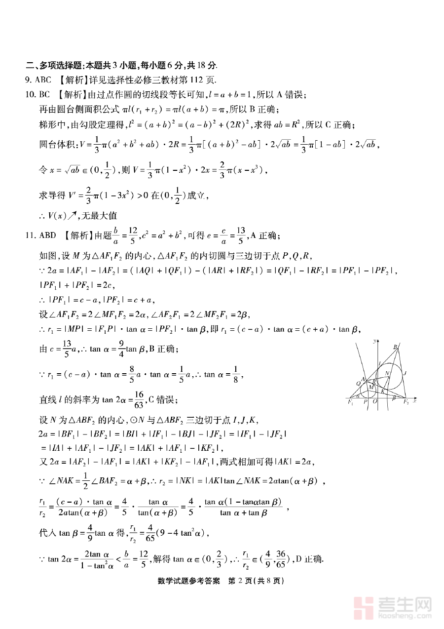 该资料的核心用途在于辅助完成本次质量检测的结果分析工作,通过对照答案,学生能够快速定位自身在数学学习中的知识掌握盲区与能力短板,教师则可基于答案反馈的整体情况进行学情诊断,进而调整教学策略与备考重点,增强高三数学备考的针对性与有效性,推动备考进程的科学推进。