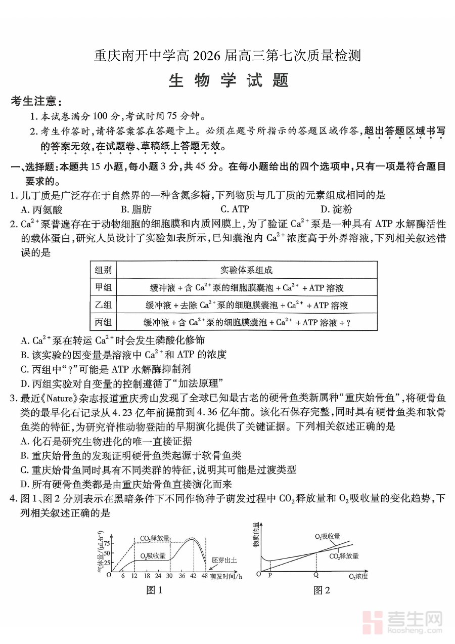 《重庆市南开中学高2026届高三第七次质量检测 生物》是重庆地区南开中学针对高2026届高三学生开展的第七次阶段性质量检测对应的生物学科资料,属于高三年级生物学科备考过程中关键的阶段性评估载体,其设计与实施贴合高三生物复习的进度与要求,能够客观呈现学生在该阶段生物学科的知识掌握程度与应用能力水平,为后续备考策略的优化提供可靠依据。