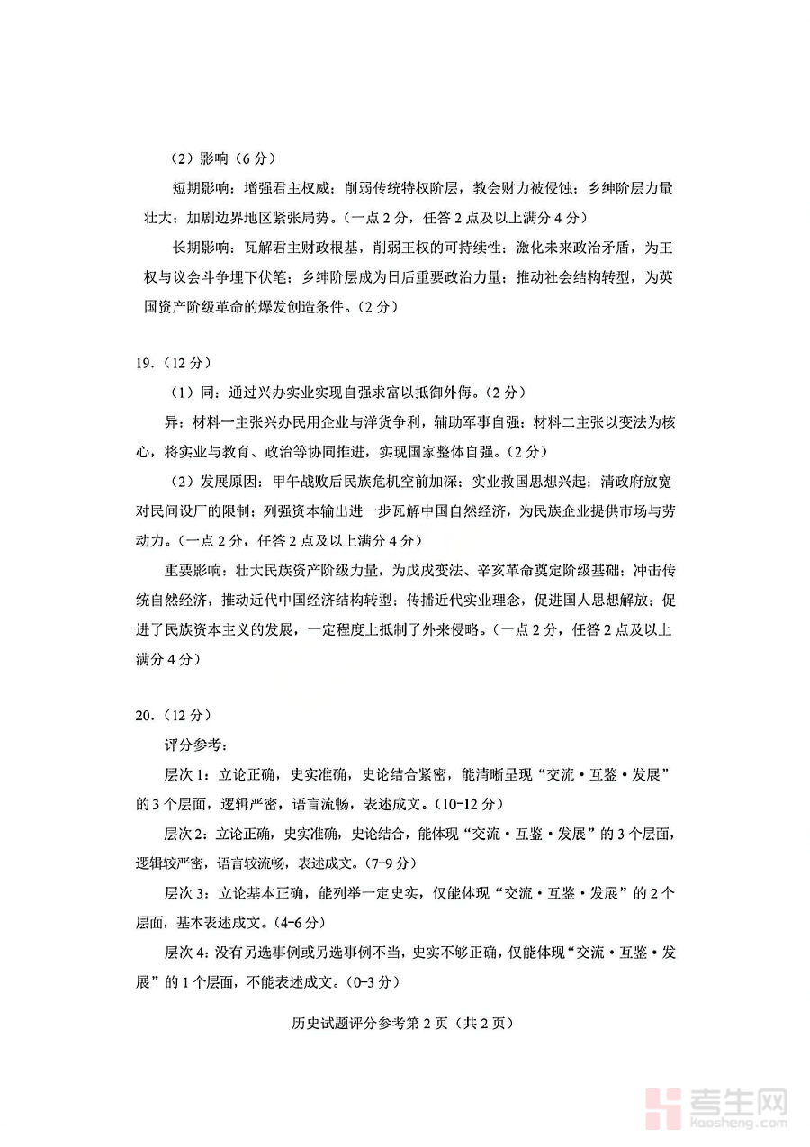 该资料可用于辅助使用者完成适应性测试后的作答核对,通过对官方答案的对照分析,能够有效诊断自身在历史学科知识体系中的薄弱环节,帮助使用者及时调整备考计划与学习策略,增强备考的针对性与有效性,为后续的系统复习奠定基础。