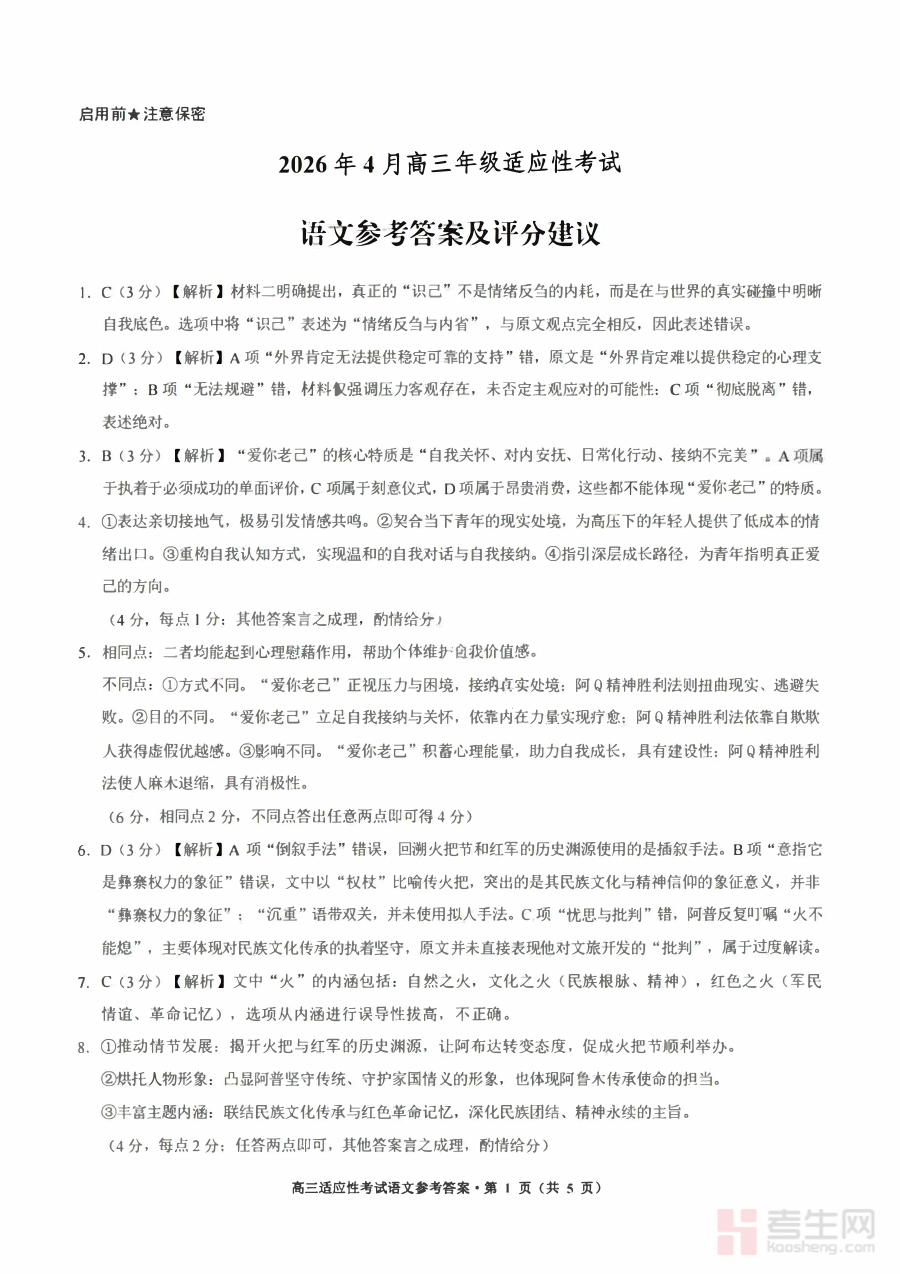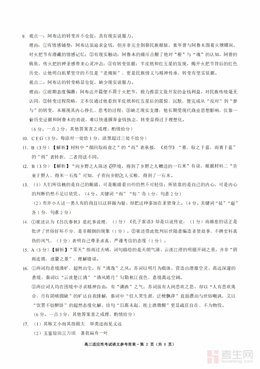 《语文答案-2026年贵州省普通高中学业水平选择性考试科目适应性测试》是2026年贵州省普通高中学业水平选择性考试适应性测试语文科目的配套答案资料,对应该地区特定年份的学业水平选择性考试适应性测试场景,为参与该测试的相关群体提供参考答案支持,是该阶段语文备考过程中的重要参考资源。