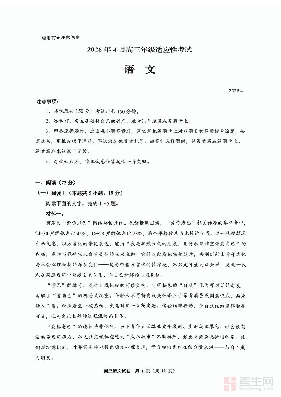 《语文试卷-2026年贵州省普通高中学业水平选择性考试科目适应性测试》是2026年贵州省针对普通高中学业水平选择性考试科目设计的适应性测试语文试卷,作为该考试体系下的重要备考资料,旨在帮助相关群体提前熟悉考试的整体框架与命题导向,为后续的正式备考提供基础参照。