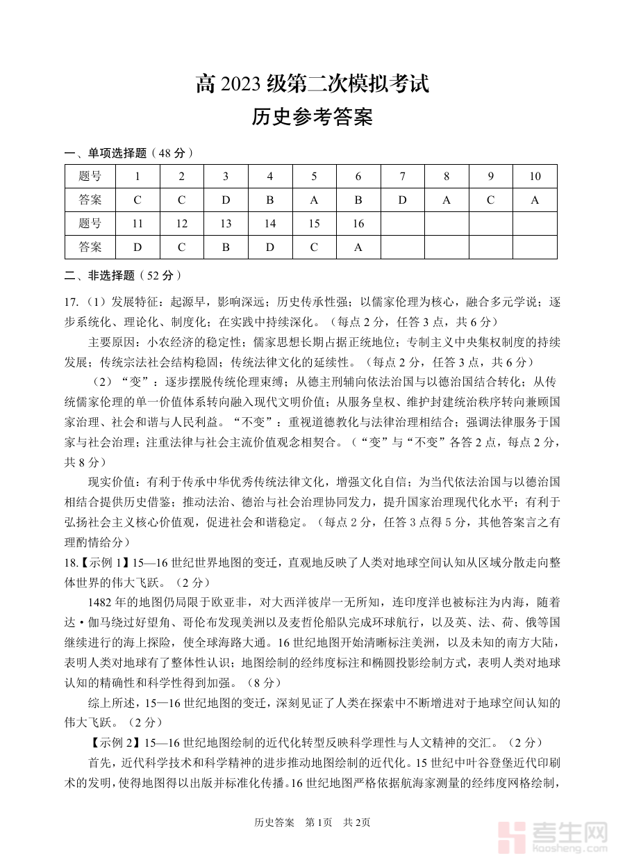 《广安市高2023级第二次模拟考试 历史答案》是广安市针对2023级高中学生组织的第二次模拟考试所配套的历史学科答案资料,该考试属于区域性阶段性教学质量检测考试,旨在通过标准化测试评估学生阶段性历史知识掌握程度与综合应用能力。作为模拟考试的核心配套内容,这份答案为本次历史试题提供了权威解答,为考生和教学人员提供了清晰的评分参考标准,是连接日常历史教学与高考系统备考的重要中间性资料。