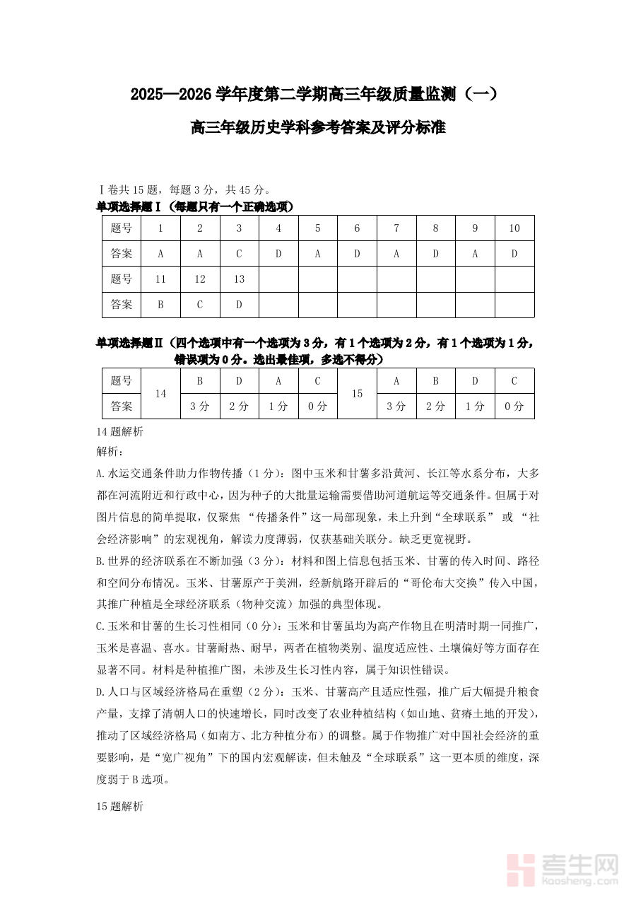 《南开区2026高三一模【历史答案】》是天津市南开区针对2026届高三年级学生组织的第一次模拟考试所配套的历史学科参考答案资料,精准对应该区域高三阶段关键备考节点的历史学科测评场景,为参与本次模拟考试的师生提供直接且权威的答案参考资源,助力师生把握本次模拟考试的评价标准与答题方向。