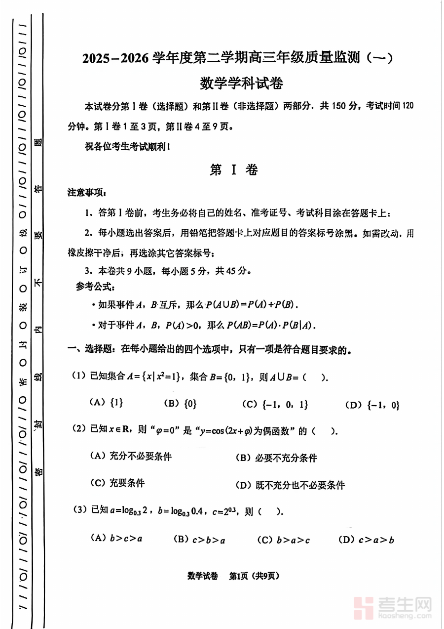 《南开区2026高三一模【数学试卷】》是南开区教育系统针对2026届高三学生组织的第一次模拟考试数学科目的官方资料,属于高三阶段重要的阶段性备考资源。该试卷紧密结合南开区高三数学教学进度与区域命题特色,能够有效反映当前阶段学生数学学习应达到的知识掌握程度和能力水平要求,为师生提供了与本地教学实际高度契合的备考依据,助力师生精准把握复习方向。