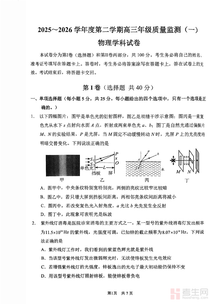 《南开区2026高三一模【物理试卷】》是2026年天津市南开区面向高三学生开展的首次物理学科模拟考试试卷,属于高三阶段关键的阶段性备考资料。它紧密结合南开区本地教学实际与高考物理命题趋势,为学生提供契合区域教学进度和考试要求的标准化模拟训练资源。