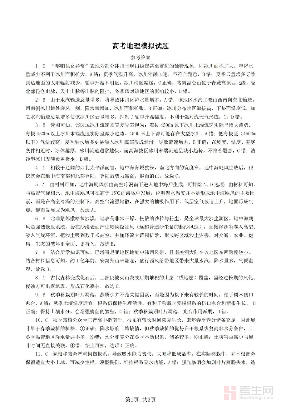 该资料可用于高三地理学科的学情诊断,帮助教师了解学生在模拟测试中的知识掌握情况与能力短板,也能辅助学生进行自我学习效果评估,为后续备考规划的调整提供数据支撑,助力优化阶段复习策略。