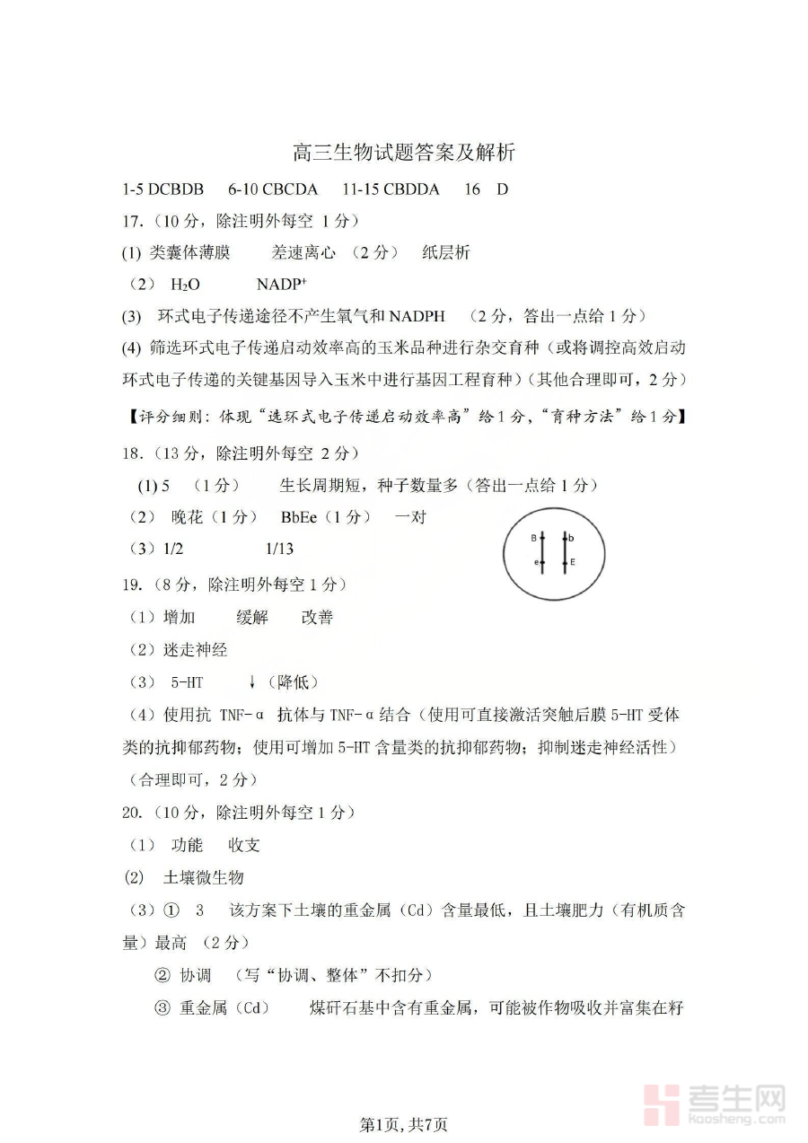 该资料的主要用途在于支持高三生物学科的阶段性学情诊断与教学反馈工作。教师可借助它快速分析学生在本次模拟测试中的答题情况,明确学生对生物知识的掌握程度及存在的共性与个性问题,从而针对性调整后续教学策略与备考规划;学生则能通过对比参考答案,清晰识别自身学习中的薄弱环节,为后续的专项复习与能力提升提供明确指引。